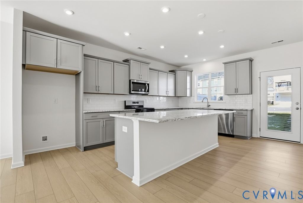 This home is MOVE-IN READY! Please contact the site agent for details of estimated completion. Up to $10,000 in closing costs with preferred lender. The Morganton is a two-story townhome with 3 bedrooms and 2.5 baths. The first-floor main living areas feature durable EVP flooring, while architectural details like wainscoting and crown molding add a polished look. Upon entering, you'll be greeted by the spacious family room that adjoins a dining area. The gourmet kitchen includes an island, pantry, and an adjoining cafe area. A powder room for guests completes the first floor, along with a front porch. Upstairs, you'll find the private primary suite, featuring an ensuite bath with a tiled shower, carpet, and a walk-in closet. Two additional bedrooms with carpet and double-door closets share a full bath. A convenient hall laundry completes the second floor. Planned amenities in the community include a 200,000-square-foot town center with shops and restaurants, a luxury clubhouse with a state-of-the-art fitness center, an Olympic-sized swimming pool, tennis courts, and recreation fields. Watermark is an upscale community nestled around the beautiful Watermark Lake in award-winning Chesterfield County, featuring Eastwood Homes' most innovative townhome designs in a master-planned setting.