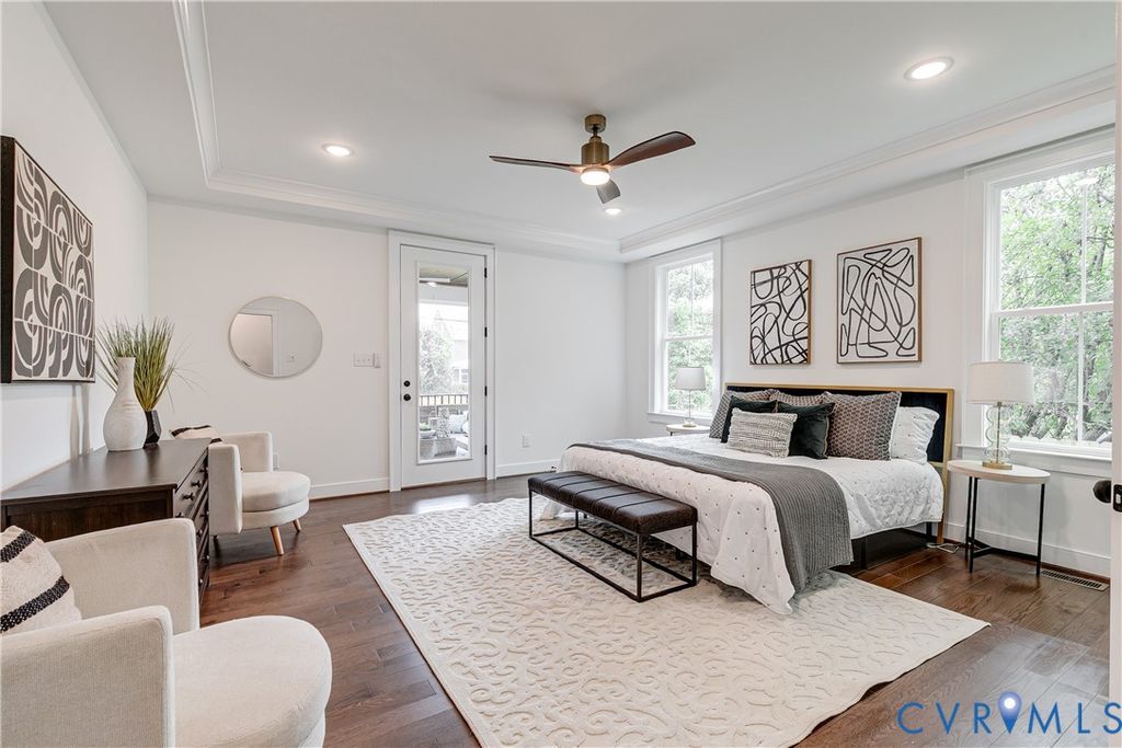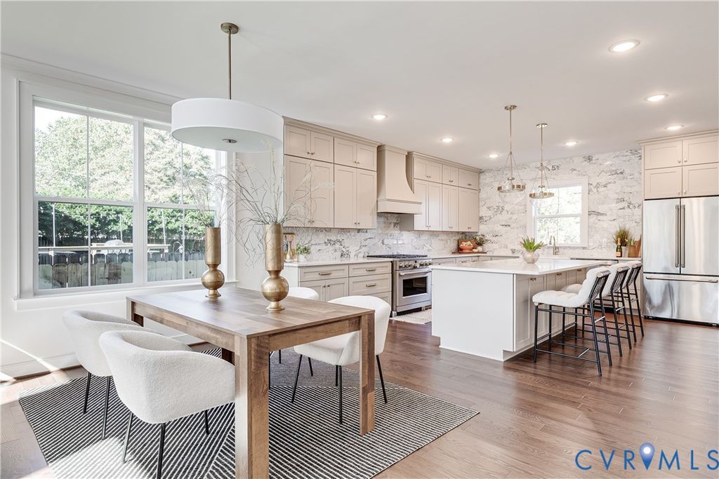 Discover an exceptional new home in the heart of Richmond's highly sought-after Near West End. This residence masterfully combines striking design with everyday comfort, showcasing dramatic vaulted ceilings in the living and dining areas that fill the space with abundant natural light. The first-floor owner's suite serves as a private retreat, featuring a spa-inspired bathroom, a spacious walk-in closet, and a convenient stackable washer/dryer hookup. The chic eat-in kitchen includes a generous island and seamlessly extends to a large deck and screened porch, perfect for relaxing or entertaining. Additionally, the main floor includes a versatile study (or 5th bedroom), ideal for guests or a home office. Upstairs, each of the three bedrooms features its own ensuite bathroom, plus there's a bonus playroom or lounge/loft area. Outside, the fenced backyard offers privacy and ample space for play or pets. Situated just minutes from Stella's and the boutiques and restaurants of Libbie & Grove, Willow Lawn, and Carytown, this turnkey home is a rare opportunity in an unbeatable location.