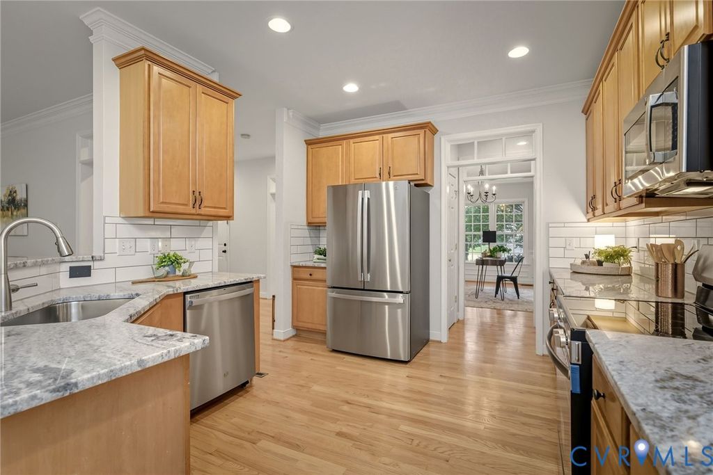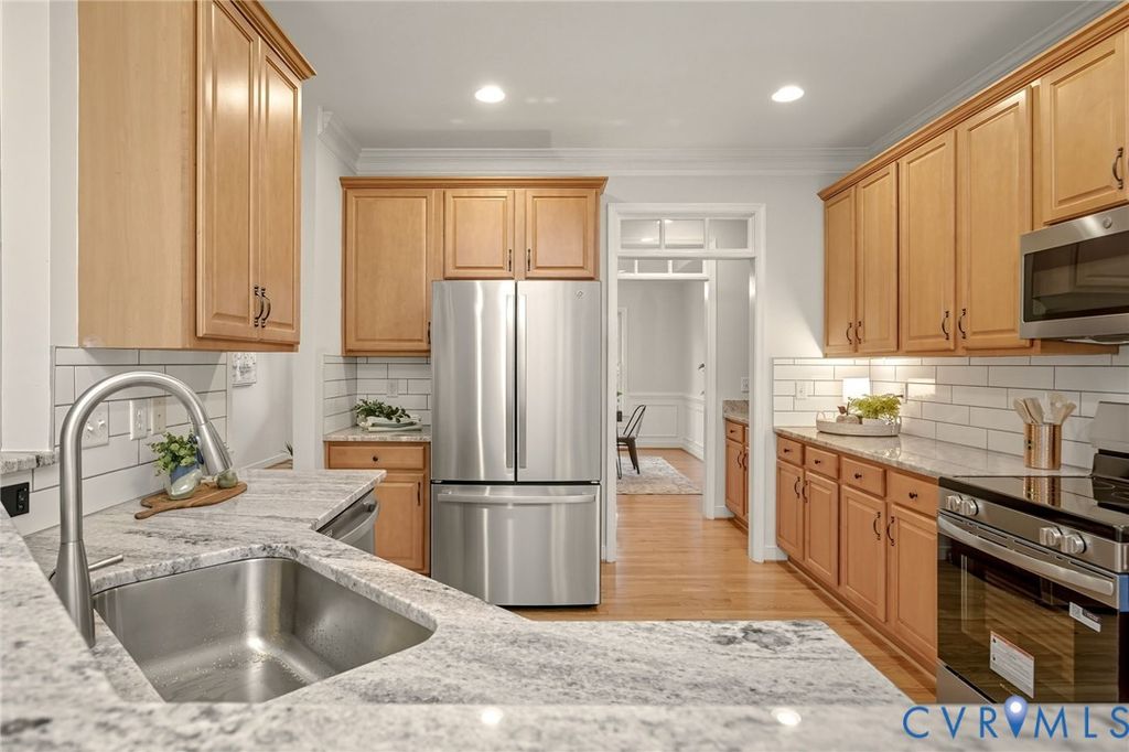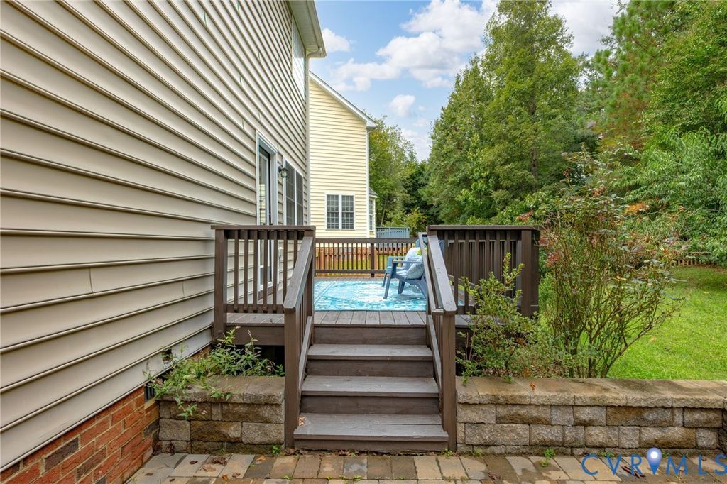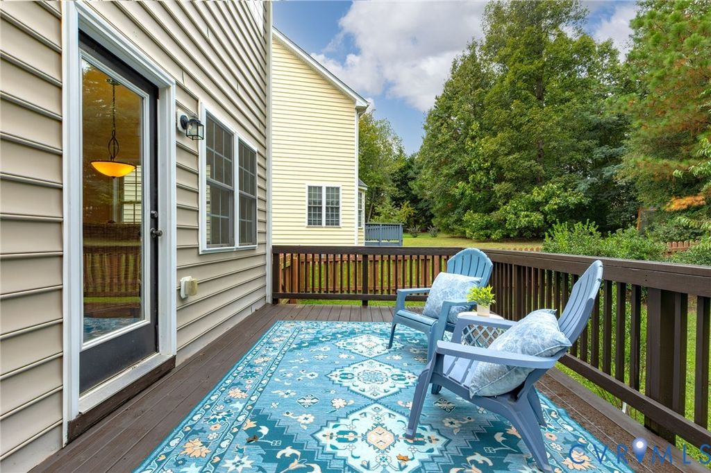 This one is a keeper! Pristine one owner home in the highly sought after Edgewater at the Reservoir in the Heart of Midlothian. Every detail has been meticulously crafted to create a space that's both inviting and impressive. Refinished Hardwood floors flow throughout the entire first level. Updated kitchen is a chef's dream, boasting custom wood cabinetry, granite counter tops, tile backsplash, and newer stainless appliances, perfect for both casual meals and entertaining. With almost 2700 sq ft of wonderful living space, this home offers four generous size bedrooms. The formal dining room with crown and chair moulding and lots of transome windows above doors giving this home an added touch. Large separate laundry room on first floor ensures everyday convenience. Two Car Garage and concrete driveway provides plenty of room for all your cars and storage needs. One of the best features is this home is nestled on a great mostly level lot with fenced in backyard with a deck and pavered patio great for entertaining family and friends. This property offers ample space for outdoor enjoyment. Recent updates include a new HVAC in 2023, fresh paint throughout entire home and new carpet on the second level. Situated in a vibrant area with close proximity to top-rated schools, shopping, dining, St Francis Bon Secours Hospital, Powhite Pkwy and 288.