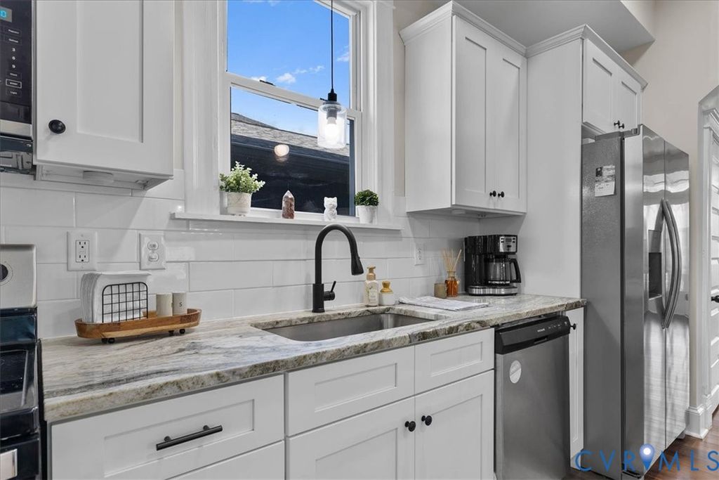 Welcome home!! This elegant house features three bedrooms and two full baths, including a spacious primary bedroom with a luxurious walk-in tiled shower. secondary full hall bath and a convenient half bathroom on lower level for guests. Bright and spacious kitchen featuring appliances less than 3 years old, lovely counter tops and plenty of room to include a roomy pantry! The entire home features LVP floors, beautiful wooden staircase/treads. Situated on a tranquil street, this property offers a peaceful and quiet living environment. As you step outside, you'll discover a balcony off the upstairs primary, perfect for enjoying your morning coffee or unwinding in the evening. The backyard is adorned with a new privacy fence, ensuring a secluded and serene atmosphere for outdoor activities and gatherings. The driveway, located in the back of the house, has ample space to accommodate three cars comfortably. Call for your personal showing on this home today. Seller prefers showings after 5