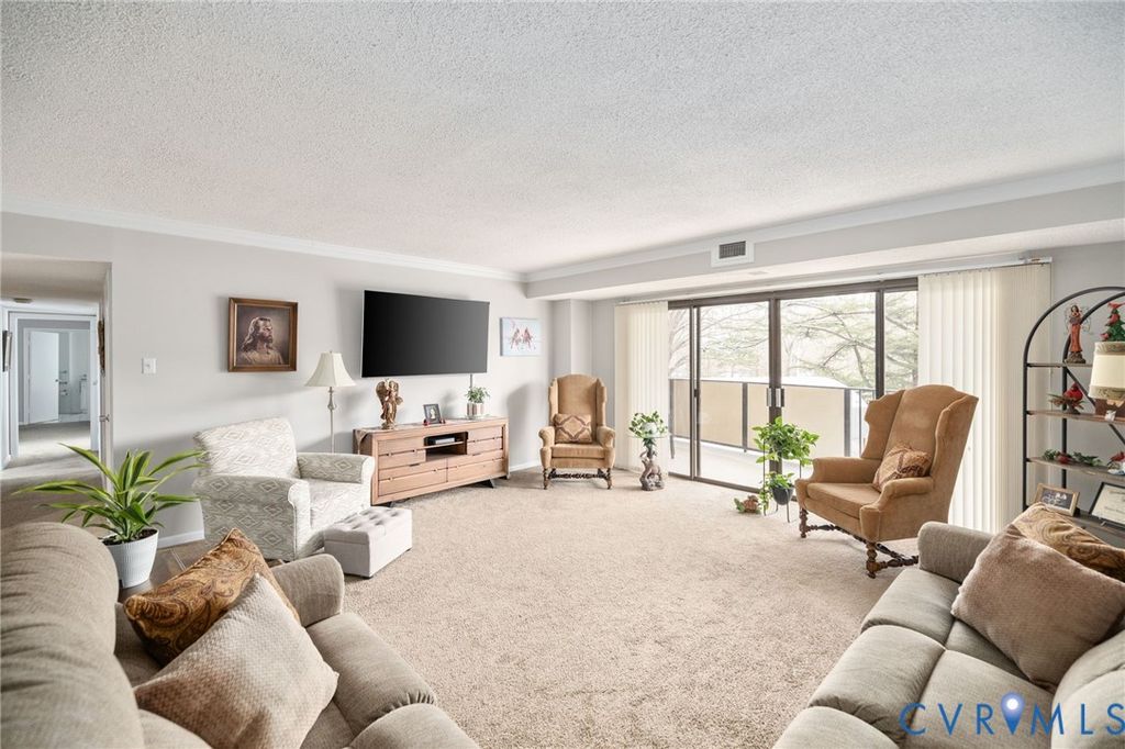 Discover the perfect balance of style and comfort in this updated 2-bedroom, 2-bath condo"”the largest two-bedroom floor plan available. Thoughtfully redesigned, the kitchen and bathrooms blend modern comforts with timeless appeal. The open-concept living space with sliding doors lead to a sweeping 36-foot balcony, where a stately pine provides year-round beauty, complemented by the vibrant blooms of Crepe Myrtles in the summer. Enjoy effortless access to the pool, clubroom, and private garage, along with the convenience of nearby shopping, dining, and major highways. Just four blocks from the James River, this residence invites both relaxation and outdoor adventure. Residents enjoy an array of amenities, including 24-hour security, a fitness center, a private park area, and meticulously maintained common areas. With cable, internet, water, and essential services included, this is city living at its finest but, without the congestion.