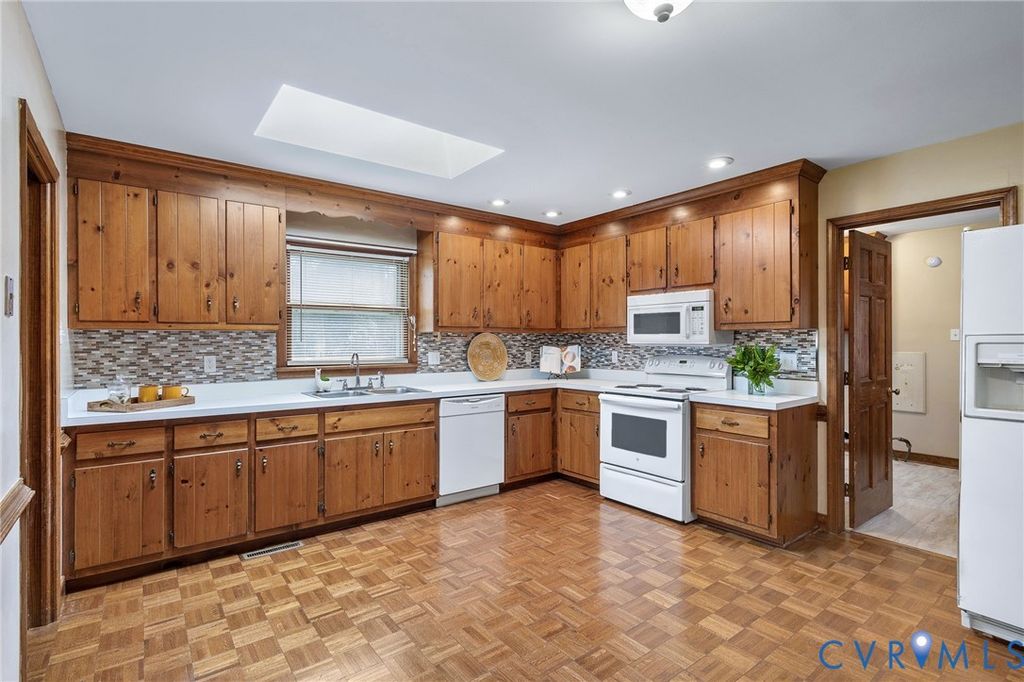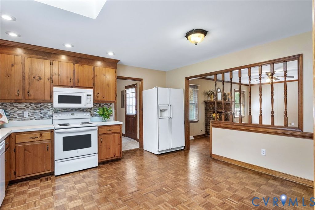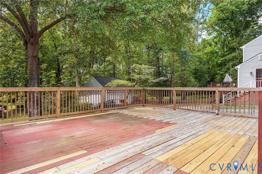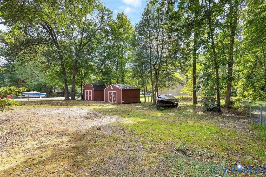 Fantastic ONE-LEVEL living! Brick rancher on a large corner cul-de-sac lot with GARAGE, 2 storage sheds and a FLAT FENCED YARD. Spacious rooms and a great floor plan for living and entertaining. Newer LVP flooring in living room and 3 bedrooms. Wood floors in kitchen and family room. RAMP to front door + easy-access shower. Updated primary bath. The deep, over-sized garage is heated and cooled and has a workbench and shelving + easy-access attic storage. You'll love the huge PARTY DECK & built-in FIRE PIT that look out over the rear yard. 2 detached storage SHEDS have electricity. 2 driveways + carport. HVAC replaced in 2020 with a maintenance contract with James River HVAC. Wonderful opportunity to enjoy one-level living in a lovely neighborhood!