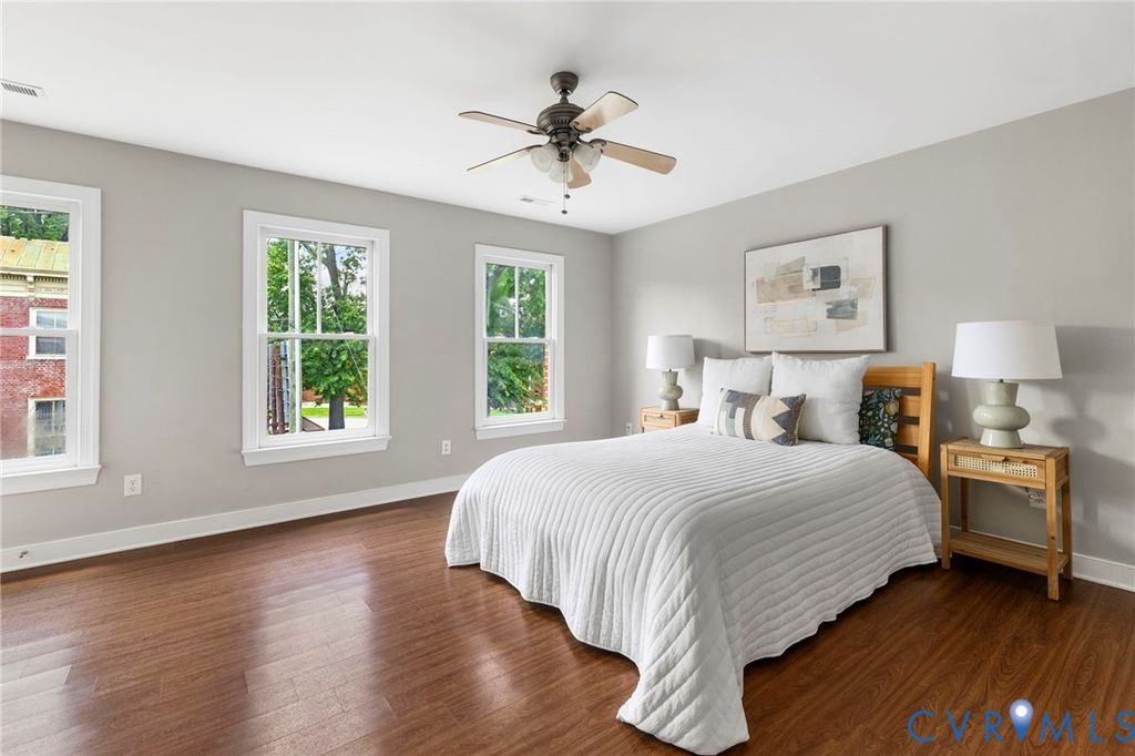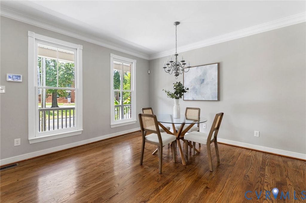 MOVE-IN READY ROWHOUSE WITH 2-CAR DETACHED GARAGE in Historic Jackson Ward! This updated, 2005 built, 3 Bedroom, 2.5 Bath, brick & hardiplank Rowhouse combines modern construction with a respect for historic charm offering 9 ft ceilings, oak hardwood flooring, crown moldings & historic-look windows. Step from the full front porch into the bright & spacious Dining Room which opens to the Granite & Stainless Kitchen and leads to the Living Room, offering a great flow for today's living! The Half Bath, Storage Closet, Coat Closet, Laundry Closet and Mechanical Closets are all located along the Entrance Hall. The 2nd Level delivers an expansive Primary Suite at the front, a Hall Bath off the generous landing and 2 Back Bedrooms with ample closet space! Privacy-fenced rear yard with paver patio provides an outdoor retreat for entertaining & relaxing! Detached, 2-Car Garage with TPO roof (new in 2021) provides fabulous storage. New Front & Back Porch Decking & Vinyl Wrap Railings by LoneStar, Freshly Painted, Updated Lighting! Come enjoy Jackson Ward - offering the perfect blend of vibrant culture, rich history and strong sense of community including local restaurants like Mama J's and Smashed, The Hippodrome Theatre, Maggie Walker National Historic Site, & First Friday's Art Walk! Convenient to DT, VCU/MCV, Whole Foods with easy access to interstates. Welcome Home!