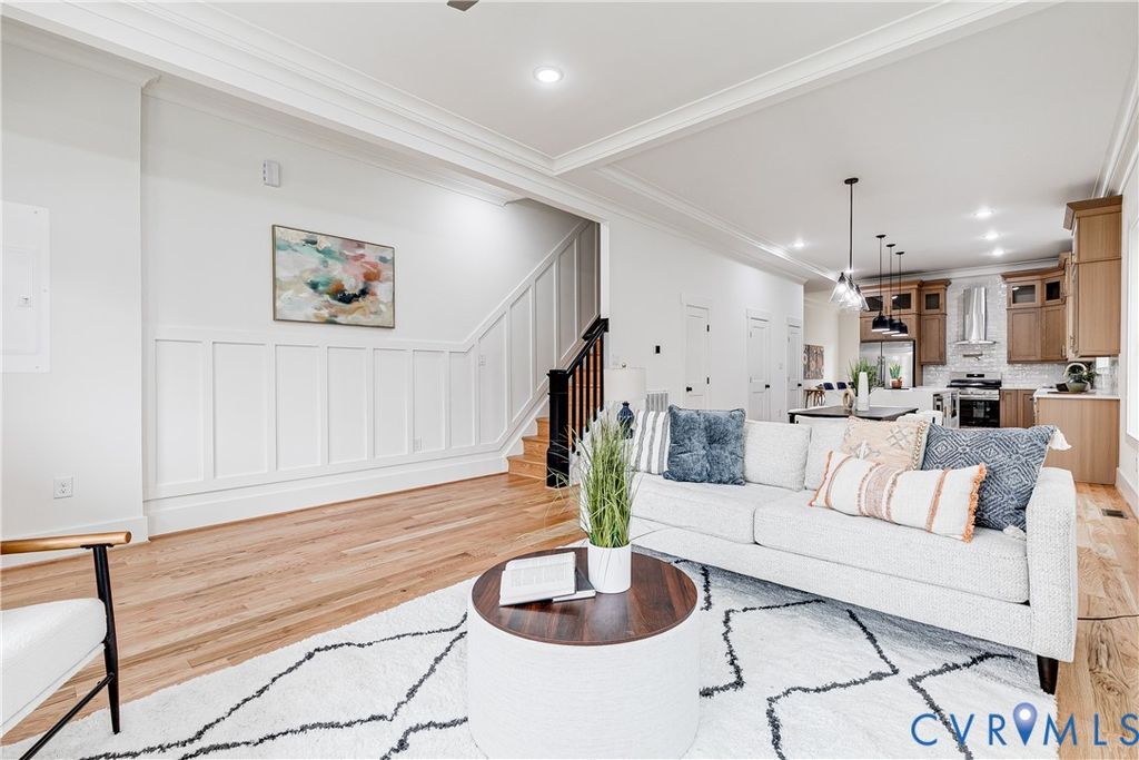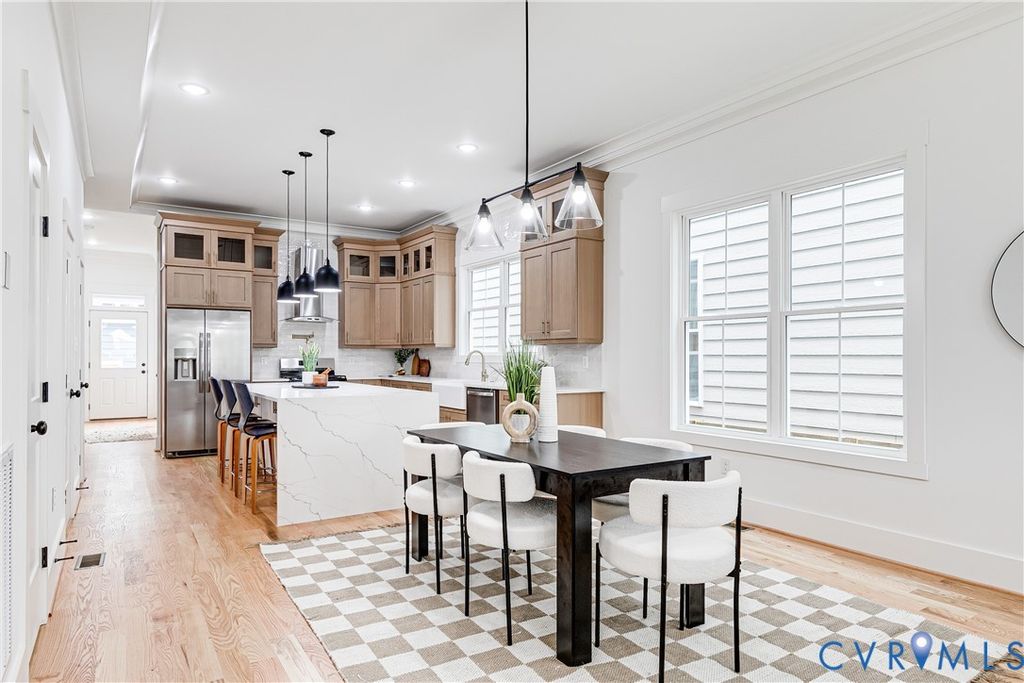 Welcome to 909 N 36th St - one of Church Hill's most exciting new homes! Nestled along a nearly complete row of new construction homes, this thoughtfully designed plan combines timeless curb appeal with modern comfort. The wide front porch with its standing seam metal roof sets the tone for the craftsmanship you'll find inside. Step through the front door to discover hardwood floors throughout, 10' ceilings, recessed lighting, a fireplace, and a custom trim package that adds style and warmth. The living room is filled with natural light and flows seamlessly into the dining area and kitchen. Here, you'll love the 8ft waterfall island with seating and pendant lighting, soft-close cabinetry with dovetail drawers, in-cabinet lighting, quartz counters, tile backsplash, high-end SS appliances, a spacious pantry, and a full bar area for entertaining. The first floor also offers a flexible bedroom/office at the rear of the home, complete with a full bath featuring a walk-in shower w/ tile surround and designer finishes. And don't forget to check out the 1-car garage (equipped w/ 100amp panel)! Upstairs, hardwood floors continue through three generous bedrooms. Two rear bedrooms include ample closet space, recessed lighting, and ceiling fans, and share a Jack & Jill bath with a gorgeous vanity, tiled floors, and a tub/shower combo with tile surround. At the front of the home, the stunning primary suite is impressive with custom trim, a vaulted 10' ceiling, cozy fireplace, and three closets"”including a large walk-in. The ensuite is equally impressive with a glass walk-in shower, stylish tile surround, and dual vanity. Outside you'll enjoy a a great landscaping package including a fully sodded yard, picket fencing in the front, privacy fencing in the rear, and dusk-to-dawn lighting! It's just a short walk to Chimbo Park, Peaberry Coffee House, Grisette, and more of Church Hill's restaurants and green spaces. Quality craftsmanship, thoughtful design, and an unbeatable location"”just a few reasons to call 909 N 36th St home!