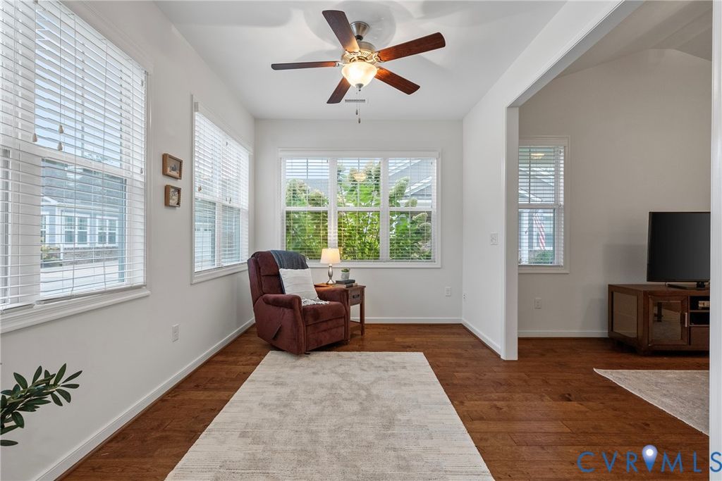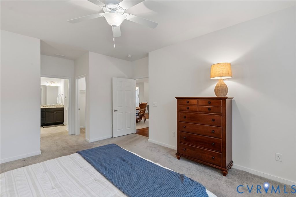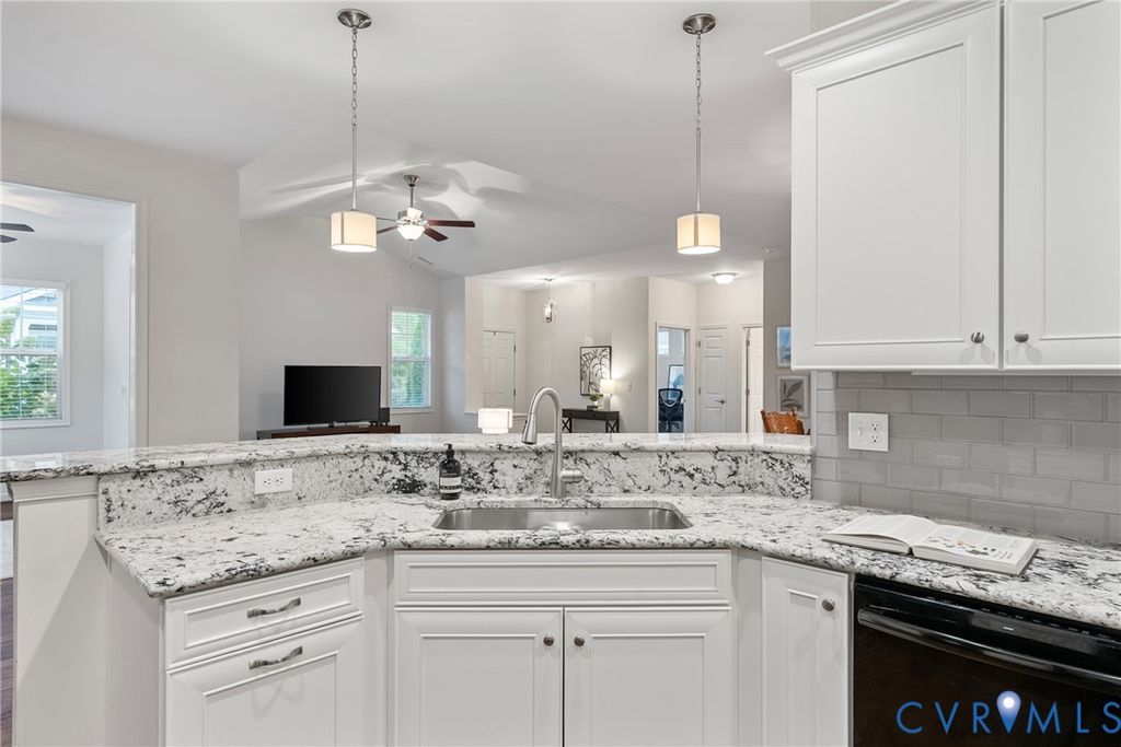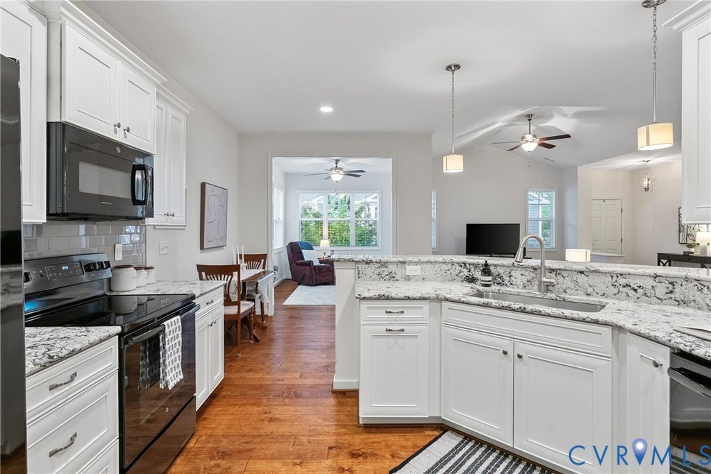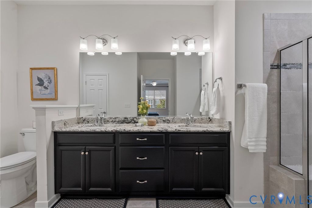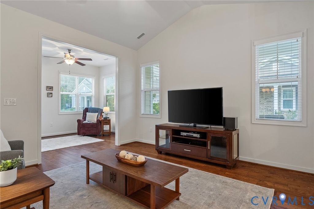 An elegant Villa for sale in Midlothian's Premier 55+ Community, the Villas at Dogwood! Discover a beautifully maintained villa that blends comfort, style, and convenience"”all just minutes from Route 288, shopping, dining, and top medical facilities. This three-bedroom, two-bath home is designed for effortless living and feels brand new. When you step inside this gorgeous home you immediately notice the vaulted ceilings in the living area and gleaming hardwood floors throughout most of the main spaces. The open floor plan seamlessly connects the living room, dining room and kitchen, creating the perfect setting for both everyday living and entertaining. The chef's kitchen features granite countertops, tile backsplash, bar seating, and a pantry, perfectly laid out to prep meals. In addition, enjoy the sunroom off the living area that invites you to relax with a good book or a cup of coffee. The luxurious primary suite is a true retreat, complete with two walk-in closets and a spa-like bath offering a walk-in tile shower, double adult-height vanity, and tile flooring. There are two additional bedrooms that offer ample closet space and good natural light with ceiling fans and lights. Both bedrooms are adjacent to a spacious full bath and a tub/shower combination. Upstairs, an un-finished second-floor storage area for added convenience off the garage. Additional features include a two-car garage a relaxing covered front porch. Every detail showcases the quality and care that set this home apart. A welcoming 55 and over community encourages both relaxation and connection, this villa offers the perfect balance of luxury living and everyday practicality. The community offers a clubhouse with a fitness center, scenic lake, walking trails and a gazebo area to relax.