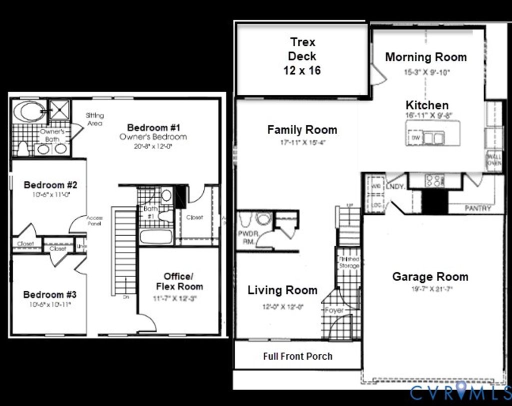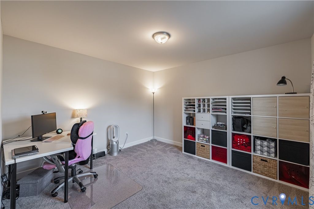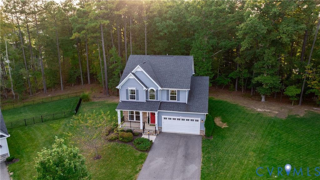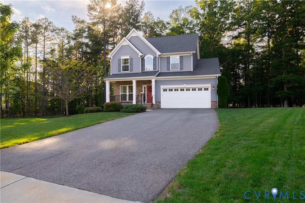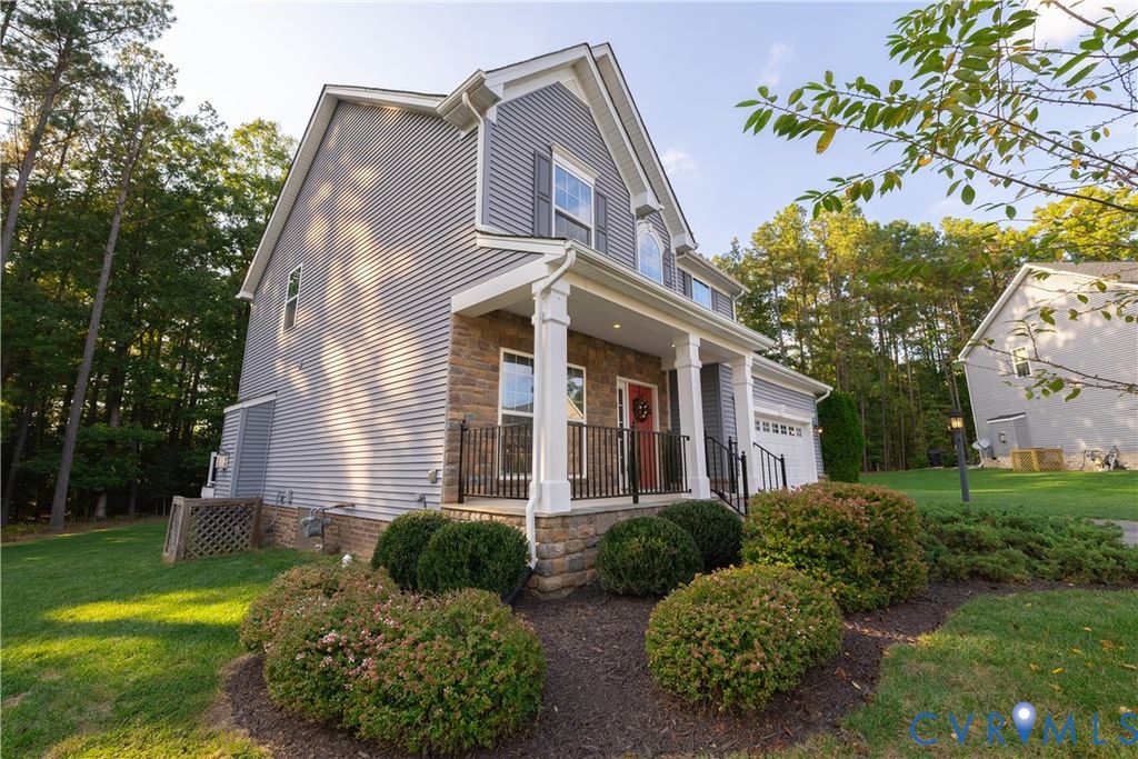 Welcome to this beautifully designed home offering three spacious & carpeted bedrooms, two full baths & a dedicated office/flex room that could easily be converted into a fourth bedroom. With over 2,100 sq. ft. of living space, this home blends comfort, function, style and charm. The interior highlights include an owner's suite which makes for a true retreat with a large sitting area, walk-in closet, and private en-suite bath. The ensuite bath is tiled with a stand alone shower and both handheld and traditional shower heads, separate soaker tub, and double vanity. In addition, bedrooms two and three are generously proportioned with ample closet space. The office/flex room is perfect for working from home, crafting, or is easily converted into a 4th bedroom w/ the addition of a closet or armoire. Downstairs boasts an open concept living area where the family room flows seamlessly into the kitchen and bright morning room allowing for an ease of conversation and entertaining. The kitchen features a center island with breakfast bar, stainless appliances, and a large walk-in pantry. Up front upon entry is a formal living room which is a great option for gatherings, a playroom, or quiet retreat. All interior appliances and smart home thermostats included! The exterior upgrades include a front with partial stone and full porch which add elegance and warmth to you and your guests upon approach. The two car garage includes storage space, driveway that can fit up to four cars, automatic garage openers and a keypad entry. The front & back yard have in-ground irrigation system for easy lawn care and lush landscaping. A 12' x 16' Trex deck is ideal for outdoor dining and entertaining. One of the best parts is that this is one of the largest homesites around and within Harpers Mill with almost half acre of land and woods at the end of a cul-de-sac! This home delivers flexible spaces to fit your lifestyle, along with modern upgrades that make it move-in ready. Conveniently located near schools, shopping, and commuter routes!