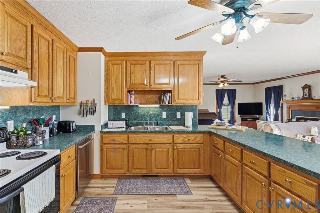 Welcome home to country charm on over five peaceful acres at 240 N Oakland Lane in Walkerton! This 3-bedroom, 2-bath ranch offers 1,688 sq ft of inviting living space with an open floorplan that seamlessly connects the living, dining, and kitchen areas, perfect for entertaining or relaxing by the cozy fireplace. The home features new LVP flooring in the kitchen, custom oak cabinets, crown molding, and chair railing that add warmth and craftsmanship throughout. Enjoy endless hot water with the Rinnai tankless water heater and take advantage of the 12x24 shed with electricity and roll-up door, plus an additional 8x12 shed for extra storage. A 20x20 metal carport provides convenient covered parking, while the property's 5 acres offer plenty of space for gardening, outdoor hobbies, enjoying the peace and quiet of the countryside or even room for horses and equestrian enthusiasts to create their ideal setup. Located just minutes from the Walkerton Boat Ramp on the Mattaponi River, this home is perfect for those who love the outdoors but still want modern comfort and easy access to town amenities.