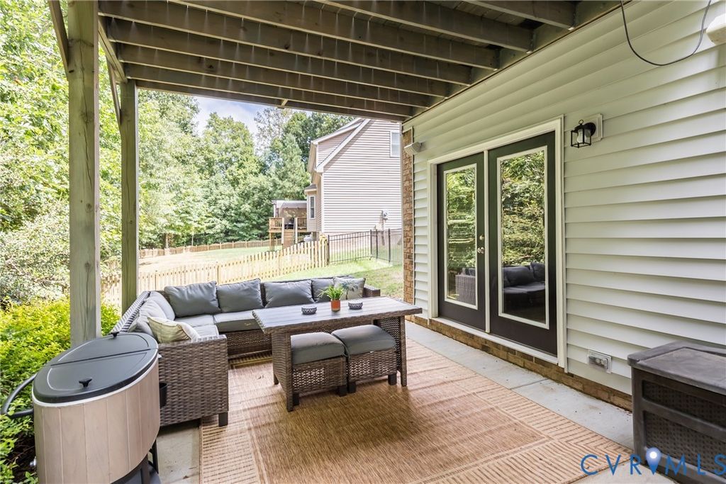 Perfect for large or multi-generational family, this Harpers Mill beauty has all the space you need to fit everyone you love. No need to wait for new construction to be done next year when this one has it all and is ready for you now! Situated on a peaceful cul-de-sac, and conveniently located minutes from Hull St with 5 bedrooms and 4 full bathrooms, along with home office space, upstairs bonus room, 1st floor bedroom and full bath, and huge full finished basement with bedroom and full bath! Enjoy morning coffee on your stone and concrete front porch facing wooded common area. Step in to find formal living or home office, dining room with space for all on the holidays, and open and bright living room with gas fireplace and custom woodwork. Chef's dream kitchen with stainless steel appliances, granite counter tops, subway tile backsplash, large island, and pendant lights. 1st floor bedroom and full bath for guests or grandparents. Huge mudroom with custom shelving right off of 2 car garage with added storage shelving. Upstairs find large loft room perfect for kid space, and two spacious bedrooms with Jack and Jill bathroom and walk in closets. Primary bedroom is bigger than most first apartments! Large side sitting room ideal for office or gym, ensuite bath with dual vanities and walk in shower, and large two sided walk in closet. Upstairs laundry room and game closet complete the 2nd floor. The basement you've been waiting for is perfect for entertaining! Two huge rec rooms, custom shelving, surround sound built in Bluetooth speaker system, bedroom and full bath and oversized unfinished storage. Walk out to patio overlooking large fenced in yard, fire pit with space for all to sit around, and private wooded backyard and creek. Updated with brand new hot water heater, all new carpet on 2nd floor, and fresh paint. All this minutes from shopping, schools, neighborhood pool, and trails. This one checks every single box, come call it yours!