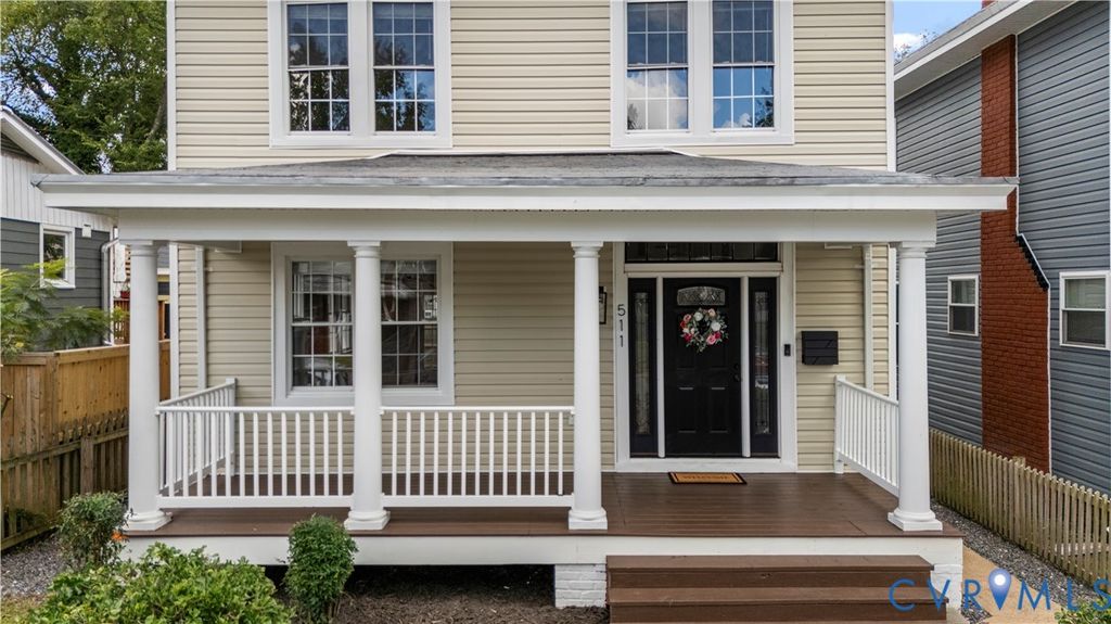 Welcome home to 511 Northside Ave! Step into timeless charm blended with modern luxury in this beautifully renovated 1920's home! Every detail has been thoughtfully updated with high-end finishes and impeccable craftsmanship. Enjoy peace of mind with all-new plumbing and electrical systems (both permitted in 2021), dual-zone HVAC systems (also permitted in 2021), and energy-efficient vinyl windows and siding for year-round comfort. The kitchen is a showstopper, featuring custom cabinetry (2021), stunning quartz countertops, and an open flow that connects seamlessly to the dining and living areas. The original fireplace anchors the cozy living room, while the grand foyer with its original staircase makes a stunning first impression. Retreat to your luxurious primary suite, complete with heated floors in the en-suite bathroom and floor to ceiling tiled shower that feels like a spa escape. Upstairs, you'll also find gleaming hardwood floors throughout the other 2 bedrooms and an additional beautifully designed full bathroom. Looking for extra space? The basement offers the perfect rec room or bonus storage area equipped with washer and dryer. Outside, enjoy morning coffee or evening gatherings on your freshly stained front porch or rear deck. The metal roof adds durability and charm, while the oversized backyard deck, stoned driveway, and privacy fence creates an ideal setting for entertaining or relaxing in your own private oasis. This home is truly move in ready with all the modern upgrades you're looking for with the character of a home built in 1920's. Don't miss your chance to fall in love.