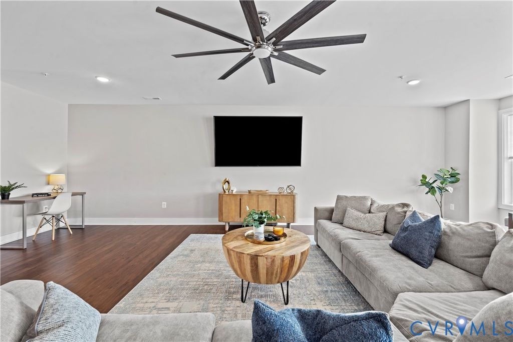 Luxury modern living in the heart of Short Pump! This spacious 3 bedroom, 2.5 bath condominium features an open concept floor plan with expansive living spaces designed for comfort and entertaining. The main level is stylish with its handsome LVP flooring throughout. The many windows that flood the space with natural light makes this home feel open and airy. The gourmet kitchen is the centerpiece of the home and wows with its large center island perfect for seating, stone countertops, wall oven, ample amounts of cabinetry, pantry, and stainless appliances that convey. The dining area has sliding door access to the balcony. The great room is perfect for gathering and entertaining or just relaxing with the family. The second level of the home features a spacious primary suite with a luxurious en suite bathroom with double vanity and a walk in shower. The generous sized walk in closet is perfect for the clothes and shoe enthusiast. There are two additional bedrooms with large closets and ceiling fans as well as a full hall bathroom. The laundry is conveniently located on this level with a washer and dryer that convey. Other features include 1 car rear entry garage, freshly painted interior, appliances convey, designer fixtures, located in one of Henrico's most desirable communities, placing you a short distance to many restaurants, shopping and entertainment, maintenance free, pool, clubhouse, and sidewalks make this a great place to live!