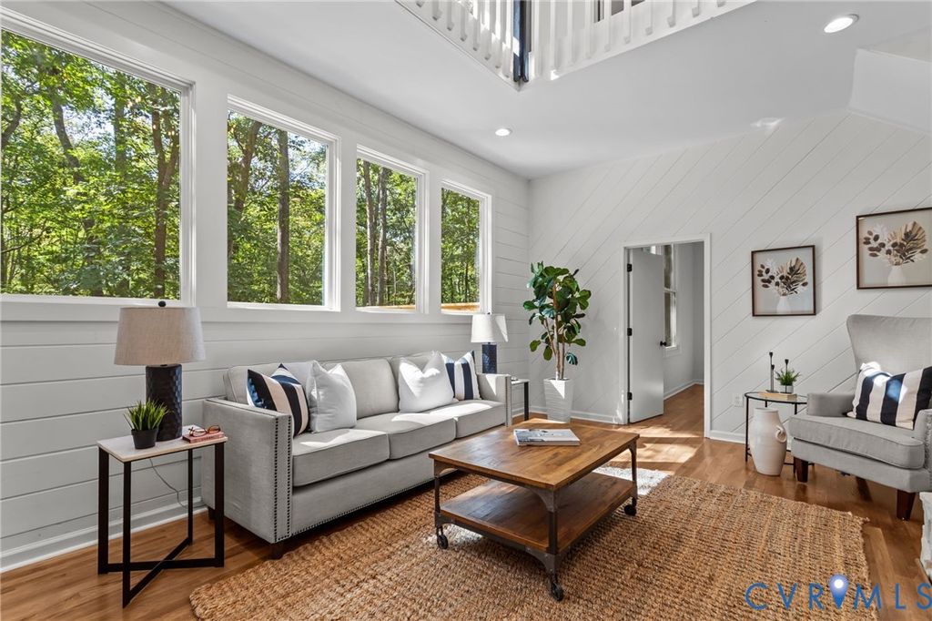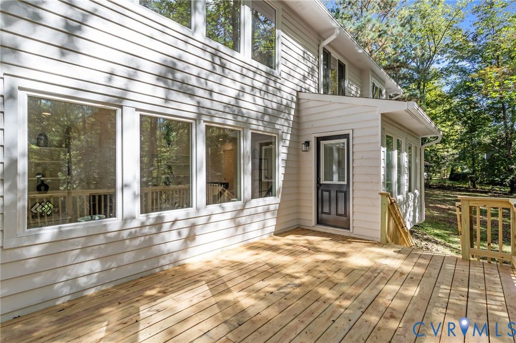 Updated contemporary home tucked away on a private 2-acre cul-de-sac lot in Hanover's sought-after Greenway community. The moment you arrive, the new walkway, landscaping,& freshly painted front porch set the tone for a warm, inviting space. The main level offers a light-filled layout where the kitchen, dining area,& family room connect. Walls of windows fill the home w/an abundance of natural light, while cathedral ceilings, fresh paint,& refinished hardwood floors create an airy feel. The family room impresses w/soaring ceilings & a floor-to-ceiling stone fireplace flanked by custom built-ins. The dining area, w/vaulted ceiling & deck access, offers wooded views & easy flow. The renovated kitchen boasts quartz countertops,ample pantry-like white cabinets,island w/breakfast bar, SS appliances,& recessed lighting. Completing the main level: a bonus room & laundry/mudroom w/built-ins. The finished attached 2 car garage offers 2 access points into the home, including easy access to the kitchen for grocery unloading. Upstairs offers NEW laminate flooring throughout. Spacious primary bedroom boasts modernly renovated ensuite bathroom & walk in closet. 4 additional bedrooms, 2 w/large walk in closets & additional renovated baths complete second level. Outside, enjoy the wooded setting from the rear deck or take in the landscaped front yard from the freshly painted front porch. Additional detached 1 car garage/shed & walk up attic for extra storage needs, whole home gutter guards & deep arisan well. Recent upgrades:NEW laminate flooring, rebuilt stairs w/trim, UPGRADED water pressure tanks,& NEW whole-home filtration system w/softener. Major updates include NEW windows, NEW HVAC (2024), & NEW water heater (2025).Recent 9/25 septic pump/inspection & a whole home inspection w/all major repairs completed offer peace of mind. Nestled on 2 acres w/a paved circular driveway, this home blends space, privacy,& convenience, all in award winning Hanover County School District & a short drive to Rt 301 for dining,shopping,& more!