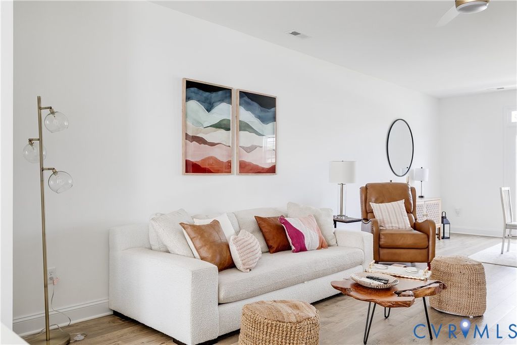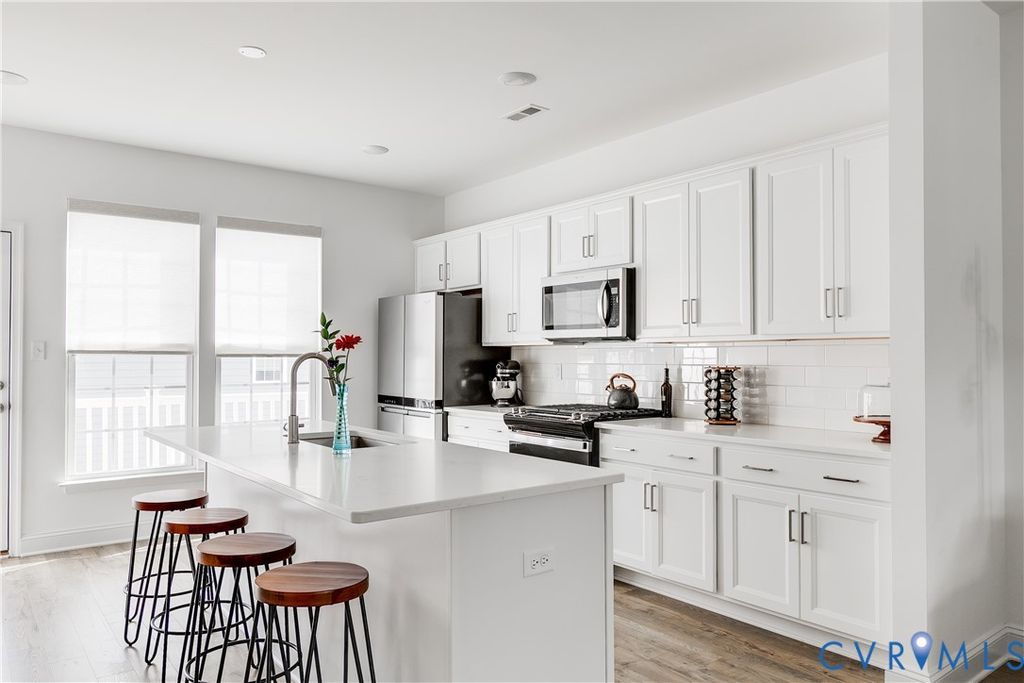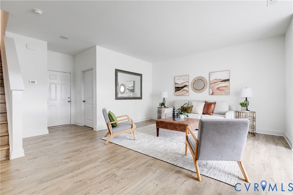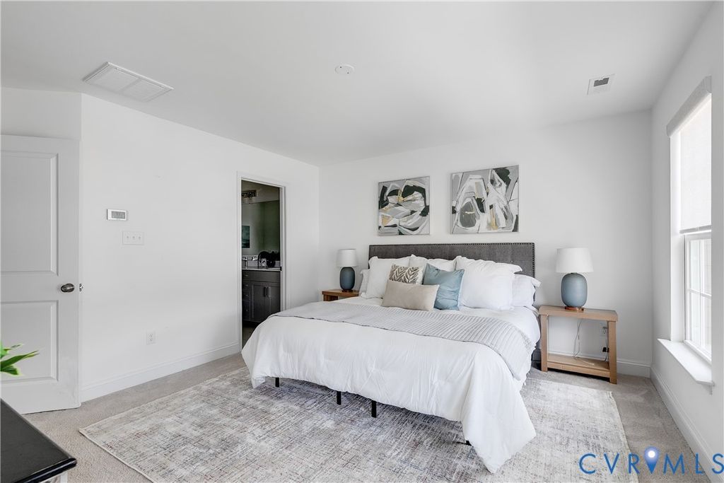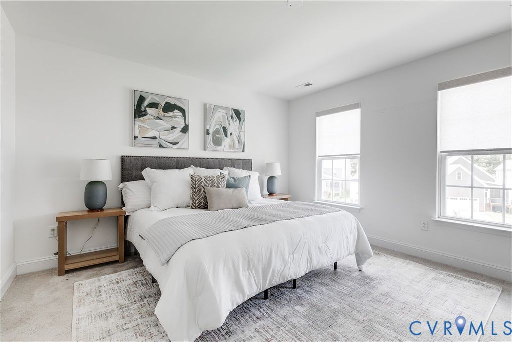 Welcome to your dream townhome nestled in the vibrant Village of Midlothian, where every amenity and convenience is just a stone's throw away. Imagine living steps from charming local eateries, the library, and beautiful parks, with effortless access to Route 288 for all your adventures beyond. This captivating Energy Star-certified 3-story townhome is not just about location; it's the epitome of modern comfort and style. With 3 bedrooms, 2.5 baths, and a generous two-car garage, this home has space for everything and everyone. The first floor features a versatile room currently set as a cozy den, complete with a walk-in storage area and plumbing ready for an extra full bath"”perfect for transforming into a guest suite, home office, or your personal creative haven. Head to the second level, and you're greeted by an open-concept layout that invites entertaining. The gourmet kitchen is a chef's delight with its expansive island, sleek gas cooktop, elegant white cabinetry, and gleaming stainless-steel appliances. This culinary hub flows seamlessly into the dining and great rooms, extending onto a private deck where you can savor your morning brew or host delightful evening soirees under the stars. On the top floor, the serenity of the sleeping quarters awaits. Here, you'll discover all three bedrooms, including a sumptuous primary suite that boasts a spacious walk-in closet and a spa-like en suite bath"”a true retreat after a long day. Enjoy the luxury of low-maintenance living with a picturesque view of lush green space right outside your front door. It's like having your own private yard without the upkeep, perfect for unwinding or playtime. This home perfectly blends a walkable lifestyle with the comforts of modern living, ready to welcome you home.