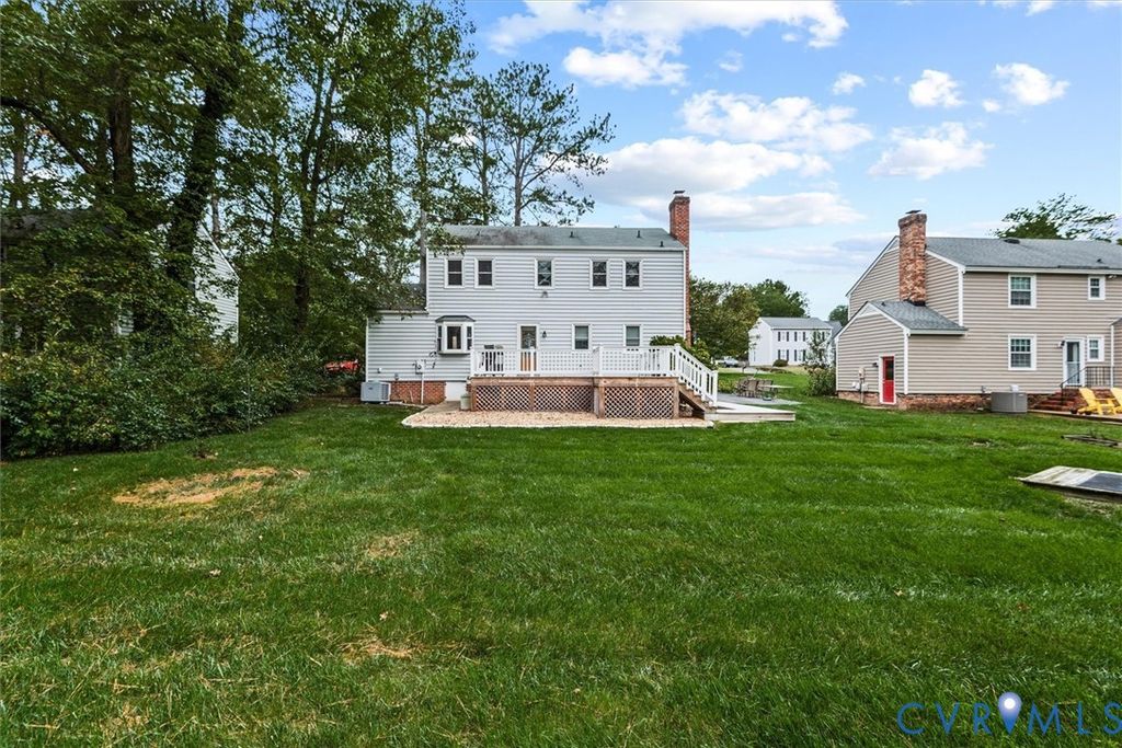 Welcome home to your charming colonial in Settler's Landing. Located in Bon Air, this beautifully maintained two-story home is nestled at the back of this charming neighborhood and minutes from schools, parks, and shopping. Enjoy great curb appeal with a paved driveway, and concrete walkway. Inside, hardwood floors are through the main living areas. The formal dining and living room offer flexible space, while the den features a full-length cozy brick fireplace. A convenient utility room includes built-in shelving for a full pantry. Upstairs, there are 4 bedrooms and two baths one of those in a spacious primary en-suite. Both full bathrooms are finished with ceramic tile. Enjoy outdoor living in the landscaped backyard, plus extras like a walk-up attic, You will love being within walking distance of Greenfield Elementary. Newer appliances; Range and washer have been replace within the last year and a half. Lawn care program contract paid until December of this year.