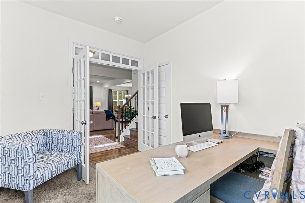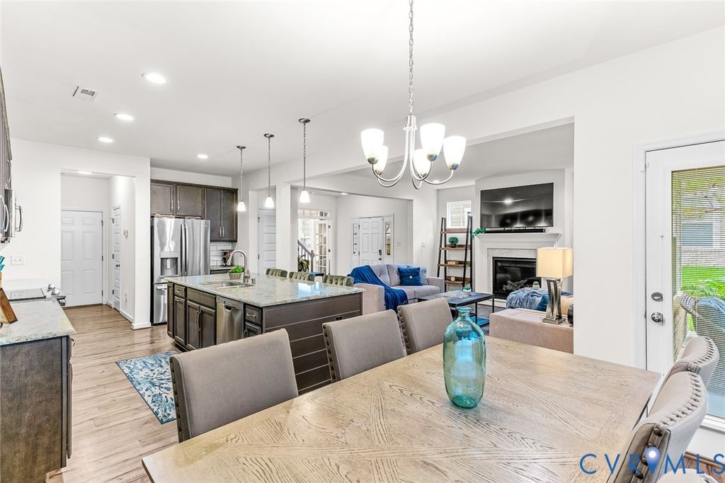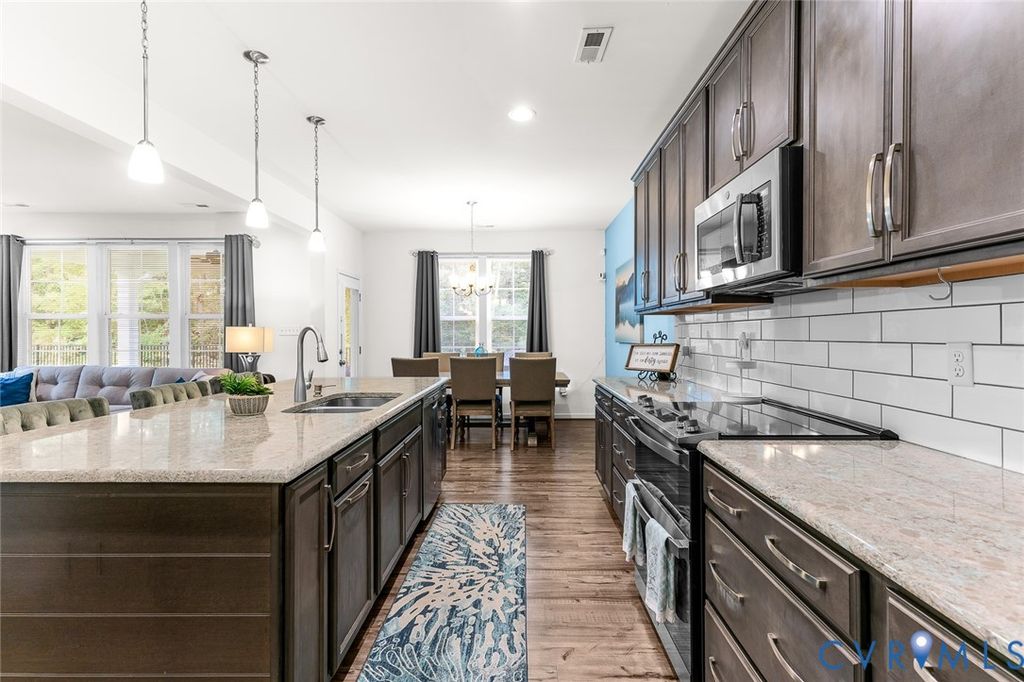 Welcome to MAGNOLIA GREEN! This STUNNING END UNIT townhome features the desired Berkley floor plan which offers the feel of a single-family home with premium upgrades and designer touches throughout! An open-concept layout featuring a HOME OFFICE w/ French doors and GAS FIREPLACE grounds the main living area. Upgraded kitchen that features STONE countertops, stainless appliances, soft-close cabinets & drawers, double oven & pantry. Enjoy peace of mind with a tankless water heater and a whole-house water filtration system, providing clean, filtered water from every tap. Beautiful LAMINATE WOOD FLOORING runs throughout the main level, which also includes a convenient powder room and access to the attached TWO CAR GARAGE. Wrought iron stair railings showcase quality craftsmanship with neutral paint throughout so all you have to do is move right in! Just off the dining area, step out to a COVERED PATIO overlooking a manicured lawn and a private, serene WOODED VIEW"”ideal for relaxing or entertaining. Upstairs, you'll find the spacious primary suite that features a tray ceiling, a generous walk-in closet, and a luxurious ensuite bath with a FRAMELESS ceramic tile shower. Two additional bedrooms"” one with upgraded wood flooring"”are well-appointed, and a versatile LOFT area provides the perfect space to read and unwind. The laundry room is also conveniently located on the upper level, making everyday tasks a breeze. Enjoy RESORT STYLE living with access to golf, aquatic center, tennis courts, parks, restaurants, and shopping. This home truly offers the best of comfort, style, and community! All this in a prime location-Moseley Elementary, Deep Creek Middle and Cosby High district ...come see for yourself!