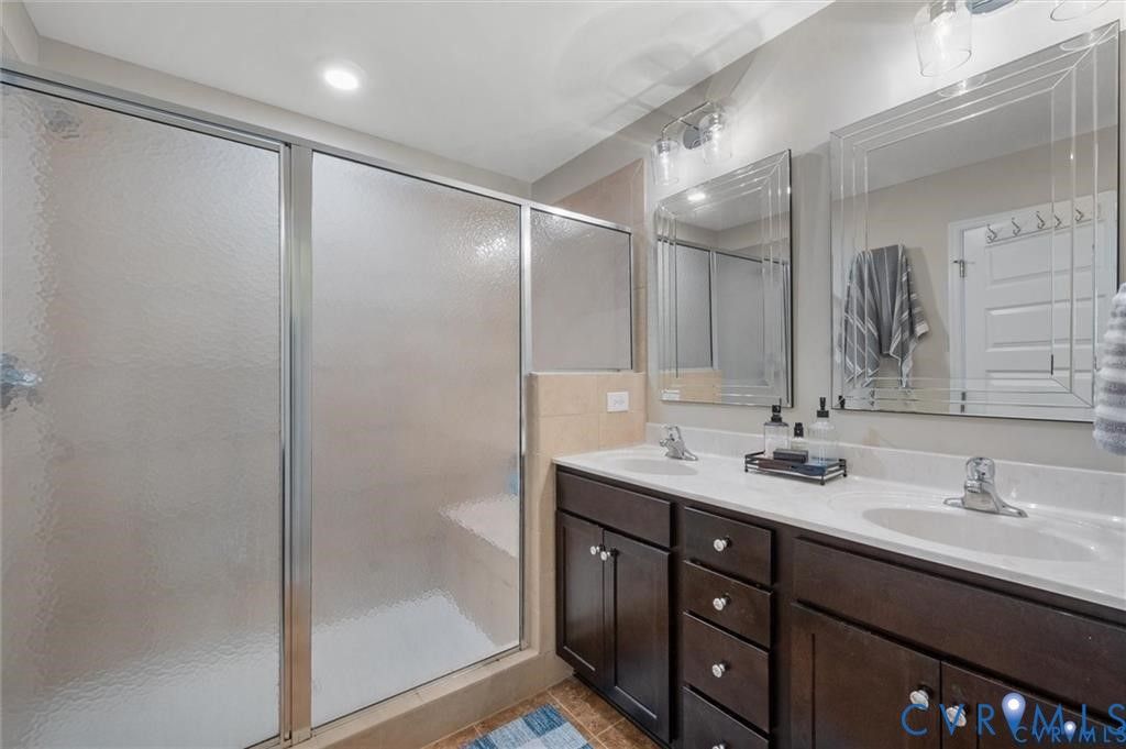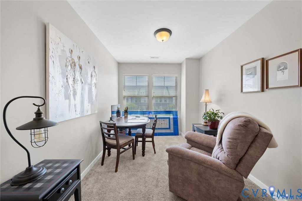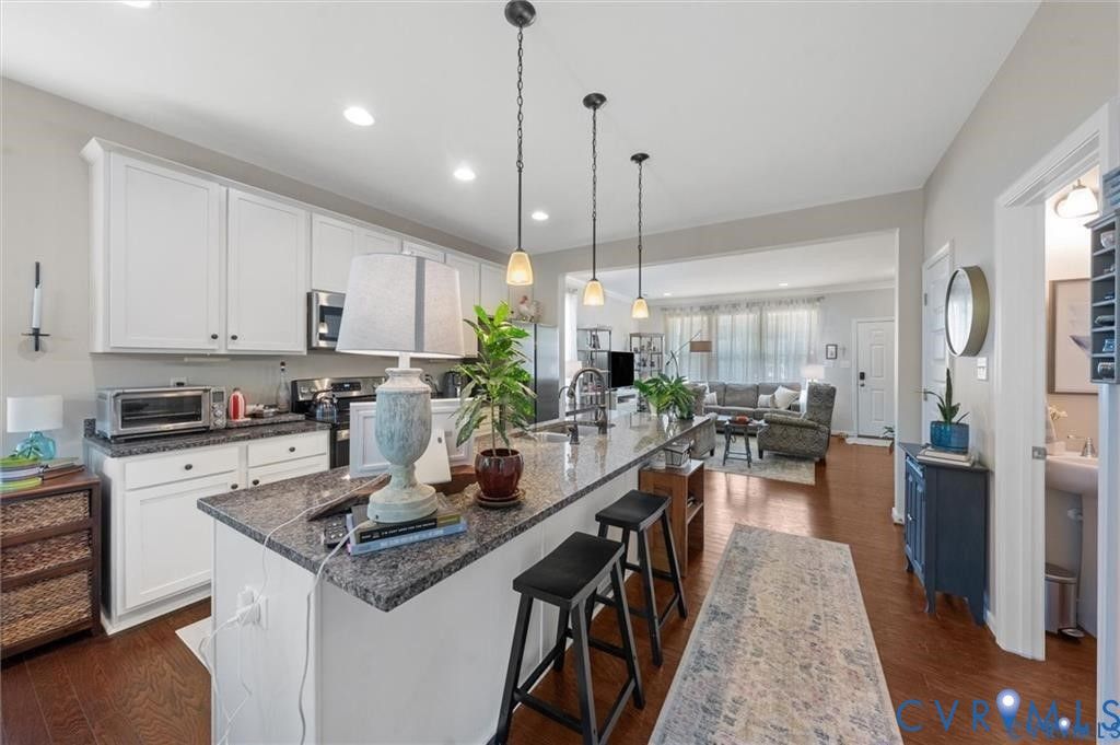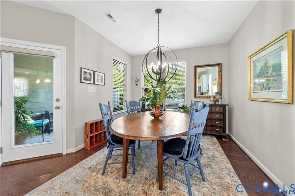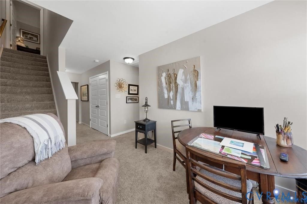 Welcome to 17633 Memorial Tournament Dr, a beautifully appointed end-unit townhome in the desirable Magnolia Green subdivision. Offering 3 bedrooms, 3.5 baths, & three levels. This incredibly well maintained home combines refined style, energy efficiency, & low-maintenance living. Entering the home through the charming front porch framed by stone columns, leads you into a light-filled main level w/hardwood floors, crown molding, & recessed lighting. The open-concept layout features a kitchen w/granite countertops, large island w/seating, & walk-in pantry. To the rear of the main level is a dining area, half bath, drop zone & provides access to back patio. Upstairs is a loft space & a spacious primary bedroom w/walk-in closet, & en-suite w/tile flooring, dual vanity, walk-in tiled shower, & a private water closet. Rounding out the second level is a second bedroom, full hallway bath, & laundry room. The third level provides privacy & flexibility w/a generously sized third bedroom, walk-in closet, & full en-suite bath. Outdoor living shines w/ a covered rear patio complete, w/overhead fan, flood lighting, & a raised garden box. Magnolia Green is one of Chesterfield County's premier master-planned communities, offering a mix of lifestyle, convenience, & top-tier amenities. You will enjoy resort-style features including multiple pools w/splash zones, tennis & pickleball courts, Magnolia Green golf course, miles of walking trails, parks, playgrounds & access to highly rated schools. Conveniently located close to grocery stores, shopping, & its proximity to 288, Powhite & 360 make getting anywhere around town a breeze. If you are looking for maintenance free living this is the one, w/exterior maintenance, trash removal, & lawn maintenance included! You will also love the HUGE energy savings made possible by the fully paid off solar panels. Additional features include irrigation system, exterior storage closet & whole-home water filtration system. This turnkey townhome offers classy comfort, convenience, & charm.