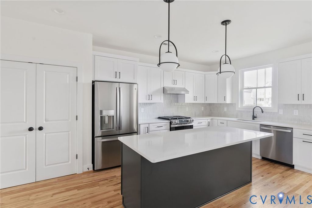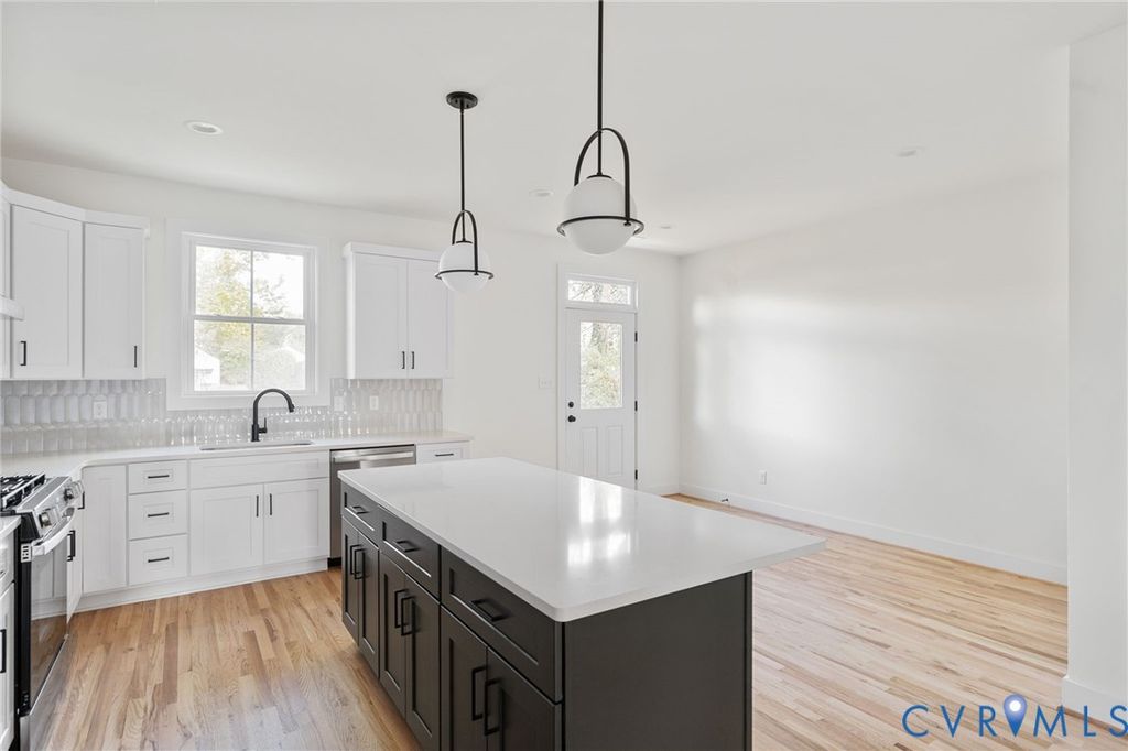 Welcome to 1230 N 36th St. This exquisite new construction home is nestled in the North Church Hill/Oakwood area. Boasting 4 bedrooms and 2.5 baths, this spacious residence seamlessly combines period elements to harmonize with the historic surroundings, while offering contemporary amenities for modern living. Revel in the charm of wood floors, abundant natural light, and elegant finishes throughout the airy open floor plan. Enjoy the convenience of off-street parking and a generous backyard. The first level features a roomy living room opening to an eat-in kitchen with a large island, shaker cabinets, quartz countertops, stainless steel appliances, and a stunning tile backsplash. The second floor hosts a sizable primary bedroom with vaulted ceilings, ample closet space and a beautiful en-suite bathroom. Additional features include a glass-enclosed shower, hall bath, laundry, and three bedrooms. With 9' ceilings and an abundance of natural light, this home offers a spacious and bright ambiance. Start your day on the front porch with morning coffee or wind down in the evening before strolling to one of the neighborhood's many restaurants.