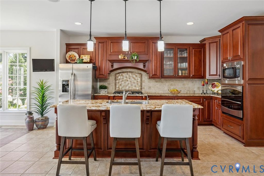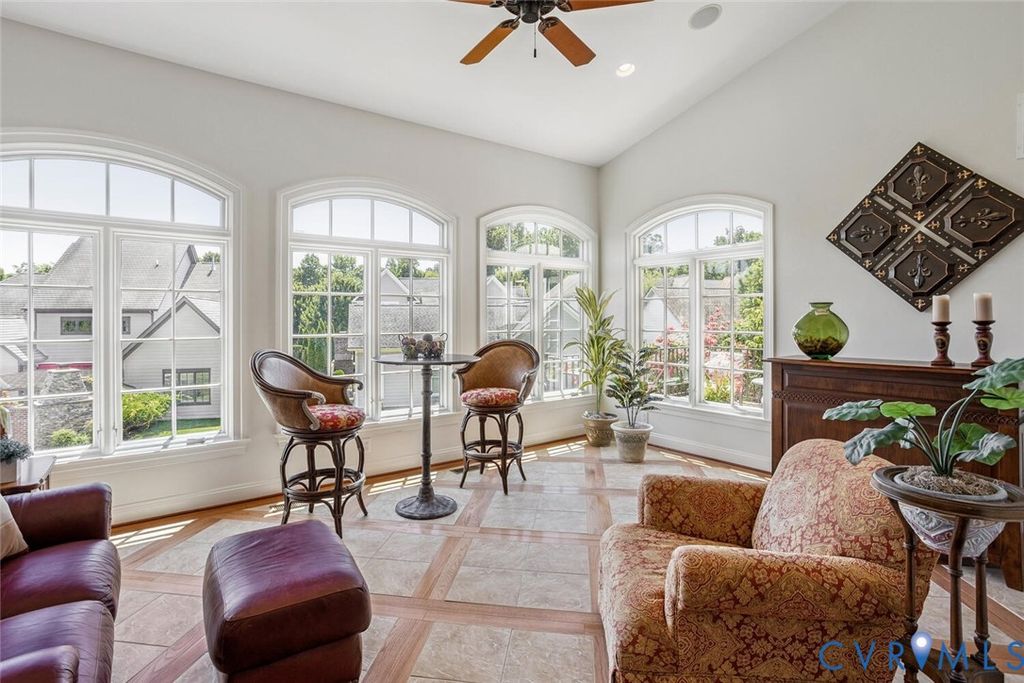 CUSTOM DESIGN CHATEAU PLAN IN SOUGHT AFTER BEL CREST NEIGHBORHOOD! Feel like you're on vacation everyday in this low maintenance home offering an open plan and situated on one of the largest lots in the neighborhood and across from the park. You'll love the convenience of One floor living along with a spacious second floor for family & friends plus a finished walk out basement complete with wine tasting and billiard rooms, family room and 5th bedroom with bath. Abundance of outdoor space too with new Trex deck off the kitchen area and 870 sq.ft. of patio off basement featuring custom brick walls and firepit. Wonderful open flow from the 2 story Foyer to the private study with custom built-in cabinetry & paneling and leading next to a Formal dining with tray ceiling, paneling and molding. The Chef's kitchen includes island with breakfast bar, custom cabinetry throughout, granite counters, gas cooking and airy breakfast room leading to deck. Off the kitchen is a 2 story family room boasting a coffered ceiling, Juliet balcony, French inspired fp surrounded by built-in bookcases and opening through stunning arch ways to sunroom with vaulted ceiling and wood & tile floor. The primary suite is pure luxury with tray ceiling & custom moldings with double walk-in closets & a spa bath featuring a spacious shower, soaking tub & double vanities. Upstairs offers another primary suite, 2 guest bedrooms & a cozy loft overlooking family room. There is also a large walk-in conditioned storage space. Lower level is the perfect game area w/wine tasting room that will accommodate many of your favorite bottles of spirits along with wet bar & beverage center. There is also a 17'x 8' conditioned storage area off the game room. Other features include built-in cabinetry in laundry room, sound and security systems, interior painted 2025, 2 car garage w/keyless entry & more. Monthly fee includes lawn maintenance, trash pickup, irrigation, window washing and common areas. Just minutes from shopping , restaurants and 288.