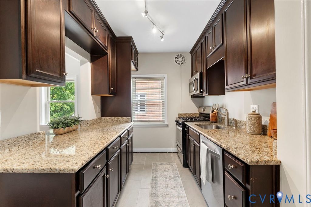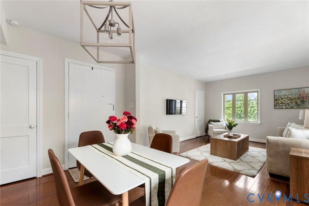 If you are not familiar with Benedictine Commons located in RVA's vibrant Musuem District, you are in for a Treat! This unique condo community includes multiple buildings comfortably placed on 2 acres with shared open greenspace and dedicated parking for residents. Walk to coffee, groceries, or enjoy an afternoon at the VMFA, some local shopping and a leisurely meal ALL minutes from HOME! Beautifully renovated, 3533-C has been freshly painted in a crisp palette and offers the privacy and quiet of a second-floor unit. The spacious Living and Dining Rooms are bright and airy with newer windows capturing sunlight throughout the day. Thoughtfully designed Kitchen has its own window, rich wood cabinetry, granite counters, new tile floor and opens to the Dining Room via a large pass-through. Both storage and counterspace are abundant with wrap-around cabinets and an added Butler's Pantry area perfect for a coffee bar. Bath has been NEWly updated with modern furniture style vanity, NEW faucet, light and toilet. Large Bedroom overlooks the rear yard, has a NEW ceiling fan, large closet and the same rich wood laminate flooring found in the Living areas and Hall. No wall units to heat and cool this space! The Heat Pump, NEW in 2022, is a forced air duct system. NEW (2025) tankless water heater. Microwave (2023). Stackable Laundry hook-ups are in the Kitchen. Multiple closets provide always appreciated storage and you have a front entrance and rear staircase (NEWly painted) for ease of access. Ideal for the Buyer who wants TURNKEY comfort and convenience or is looking for a cozy Lock-and-Go option!