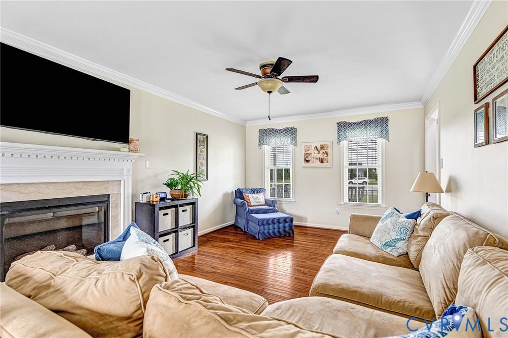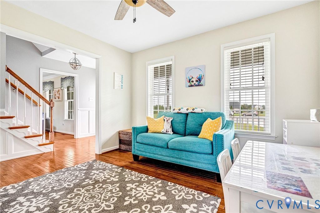Welcome to this beautifully maintained 4-bedroom, 2.5-bathroom Craftsman-style home offering 2,133 sq ft of living space on a serene 1.34-acre cul-de-sac lot. Nestled in an established rural neighborhood that offers both privacy and convenience, you'll enjoy easy access to restaurants, shopping, and major interstates. The home features low-maintenance vinyl siding, a dimensional shingle roof with gutters, and a charming wrap-around porch leading to a spacious rear deck that overlooks a tree-lined backdrop. Inside, you'll find hardwood floors throughout the primary living areas and bedrooms, beginning with a welcoming board and batten foyer complete with a coat closet and half bath. The cozy living room features a gas fireplace with a mantle, crown moulding, dual ceiling fans, and direct access to the rear deck. The updated kitchen is a cook's dream with granite countertops, stainless steel appliances, gas cooking, a pantry, garden window, and an open layout to the morning room. A formal dining room with a ceiling fan provides flexibility to serve as a playroom, office, or additional living space. The laundry/mudroom includes shelving, washer/dryer, and side access for added functionality. The spacious primary suite boasts a ceiling fan, walk-in closet, and en-suite bath with a double vanity. Two additional bedrooms also feature hardwood floors and ceiling fans. The finished third-floor bedroom offers luxury vinyl plank flooring, recessed lighting, a mini-split HVAC, a closet, and an adjoining bonus living room area. Outside, enjoy a large detached shed for extra storage and a double-width driveway for ample parking. This home offers comfort, versatility, and scenic surroundings"”ready for you to move in and enjoy.