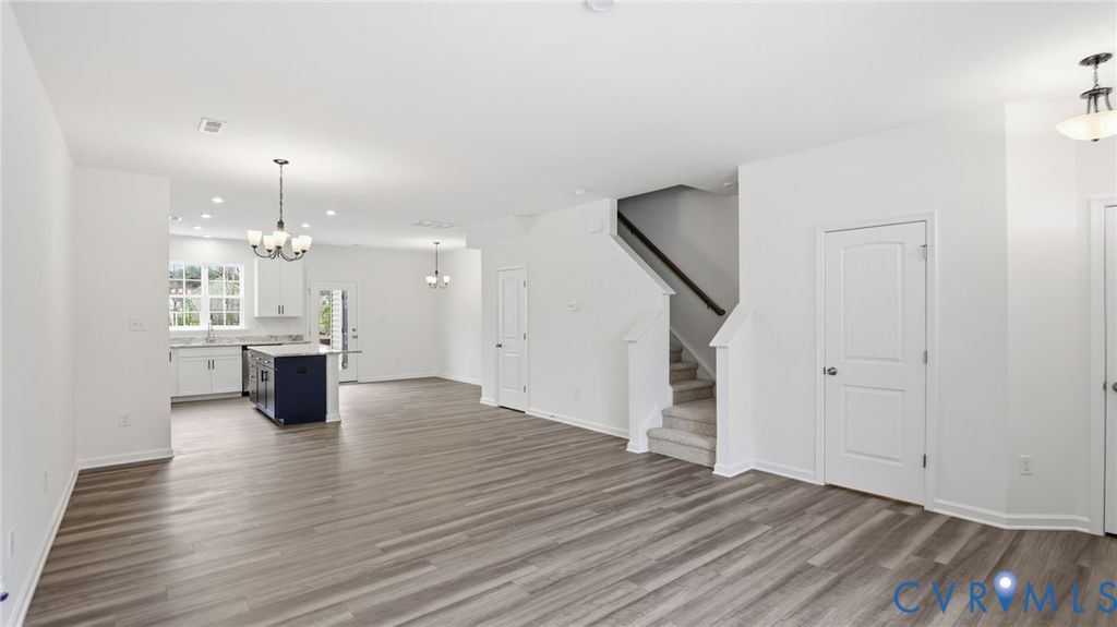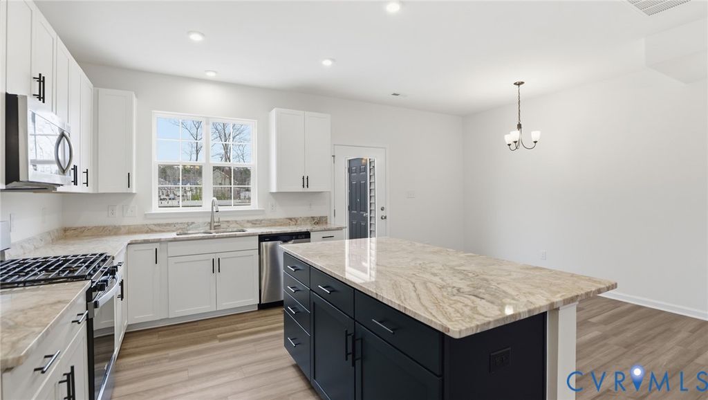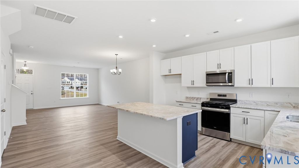 The Morganton is a two-story townhome with three bedrooms and 2.5 baths. The first-floor main living areas feature the rich color variation of the Oyster oak EVP floors. Upon entering, you'll be greeted by the spacious family room that adjoins a dining area. The gourmet kitchen includes crisp white perimeter cabinets, an island with Stone Gray cabinets, exotic Colonial White Granite countertops, blue island cabinets, exotic Fantasy Brown Granite countertops, all accented by black accents, a pantry, and an adjoining cafe area. A powder room for guests completes the first floor, along with a front porch. Upstairs, you'll find the first primary suite, featuring an ensuite bath with dual vanities, a linen cabinet, and a spacious walk-in closet. Two additional bedrooms share a convenient hall bath with a tub/shower combo. A laundry room completes the second floor. Amenities in the community include a beautiful, state-of-the-art clubhouse with an Olympic-sized swimming pool, fitness center, and playground area for residents to enjoy!