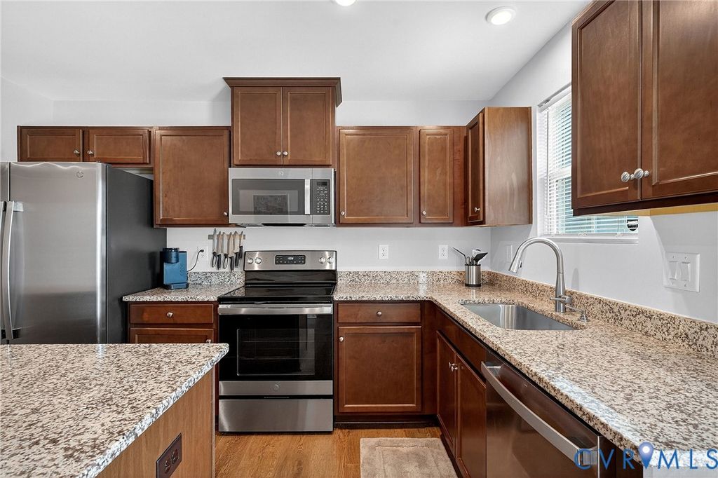 Welcome to this beautifully upgraded 3BR, 2.5BA townhome in The Townhomes at Four Seasons"”a sought-after 55+ community in New Kent. The open-concept floor plan features a gourmet kitchen with granite counters, stainless steel appliances, island seating, and ample cabinetry. Luxury vinyl plank (LVP) flooring extends through the kitchen and dining area, while the living spaces and bedrooms offer plush carpeting. The main-level primary suite includes a walk-in closet and en suite bath with dual vanities and a tiled walk-in shower with bench. Upstairs are 2 spacious bedrooms, a full bath, and extra storage. Additional highlights include recessed lighting and attached garage. Built in 2023. Community amenities feature a clubhouse, pool, fitness center, pickleball, bocce, dog park, walking trails, and social events. Lawn and exterior maintenance included. Easy access to I-64, Richmond, Williamsburg, wineries, golf, and more. Move-in ready and full of charm"”schedule your tour today!