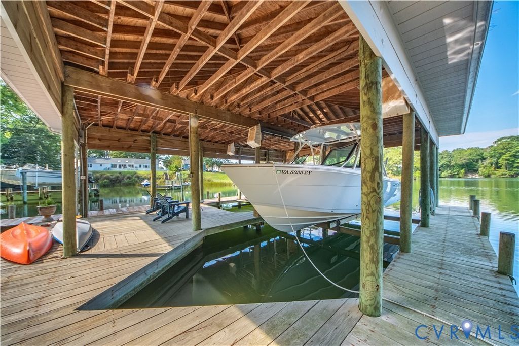A River Home with everything you need to fully enjoy a relaxing wonderful time on 1.76 acres. This property has been well taken care of and expanded for all sorts of use. The main house has three spacious bedrooms, two full baths, large family room with vaulted ceiling, cook's kitchen with eat-in area and bar stool height countertop. There is an inviting front porch, rear decking, boasting a covered outdoor den with wood burning fireplace. The beautiful pool area is fully fenced and has a built-in gas grill, refrigerator and counter space area plus plenty of space for large gatherings or relaxing. There is also an outdoor shower. A short stroll to the water from your pool is a hard-to-find boat house with two lifts-3500 and 10,000pounds. The boathouse has more covered decking to gather and /or store your kayaks plus a fish cleaning station. Across the expansive front yard is a 2 room- with a full bath guest house plus floored oversized garage (15'x31') for vehicles and another bay (18'x31'2'') for wood working or other hobbies. This is truly a unique offering. Once you are here, you never have to leave!