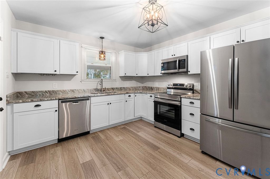 Welcome to this charming 1,245 sq ft single-family home in Colonial Heights, offering 3 spacious bedrooms and 2 full bathrooms. Step inside to fresh paint, new light fixtures, and a thoughtful mix of finishes that balance comfort and style. Enjoy hardwood flooring throughout the living room, dining area, and bedrooms, with LVP flooring in the kitchen and bathrooms for durability and easy maintenance. The kitchen is fully equipped with an electric range, microwave, refrigerator, and dishwasher, perfect for everyday cooking or entertaining. A wood-burning fireplace adds warmth and character to the main living space. Additional highlights include a finished basement (not included in the square footage), a concrete patio, open yard, and an attached carport for covered parking and extra convenience. Conveniently located minutes from recreational attractions, shopping in Richmond, and Short Pump.