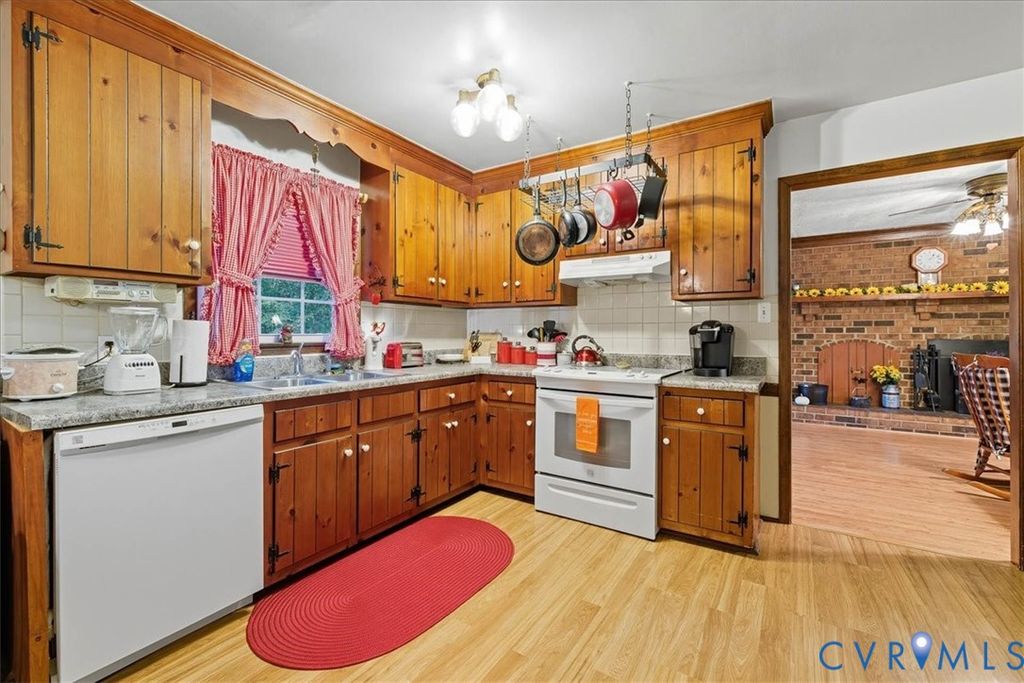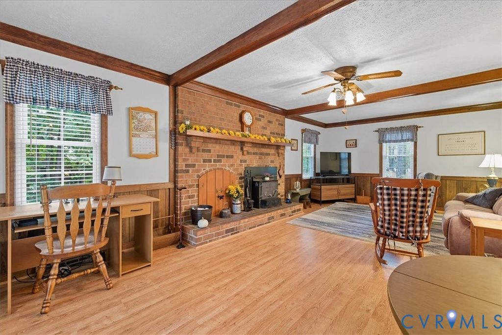 Nestled on 1.4 acres in the Corbin Acres subdivision of Powhatan, this charming one-story ranch welcomes you with a front porch that sets a peaceful, easygoing tone from the start. Step inside and you'll find a bright living room that could easily double as a cozy reading nook thanks to its abundance of natural light. The spacious kitchen is designed for both function and comfort, featuring a pantry, an eat-in area with views of the backyard, and a classic window over the sink which is perfect for enjoying the scenery while doing dishes. Just off the kitchen, the oversized family room is the heart of the home, showcasing a stunning wood-burning stove, a beautiful mantle that complements the wood beams, and direct access to the back deck overlooking the expansive yard. The primary suite offers a private bath with a stand-up shower, while two additional bedrooms provide plenty of space for family, guests, or a home office. A generous laundry room with extra storage completes the interior. All of this comes with the tranquility of Powhatan living yet you're only about 20 minutes from Chesterfield and 288!