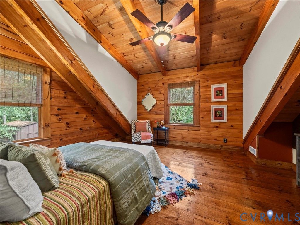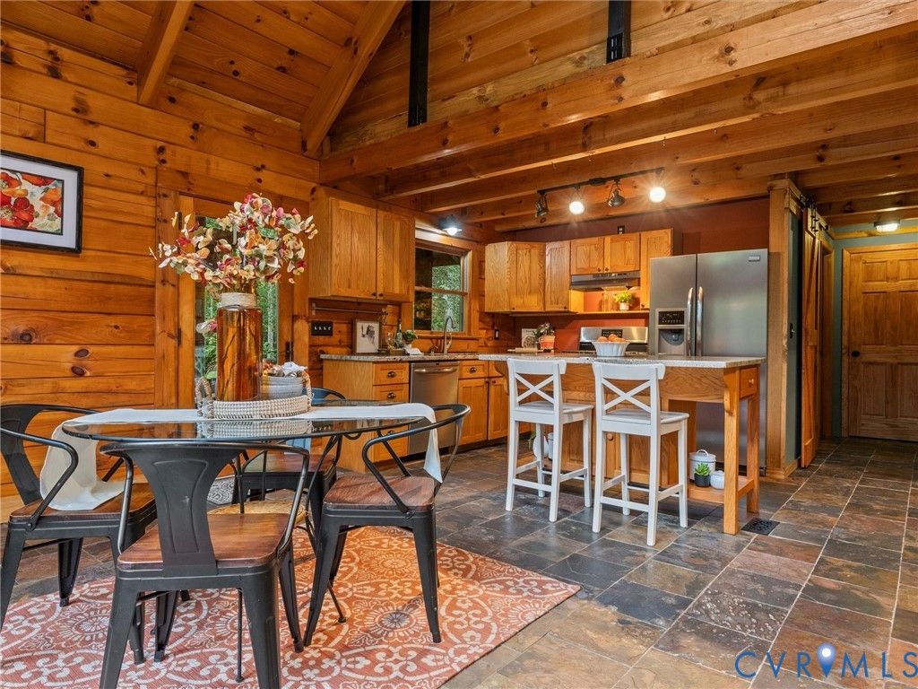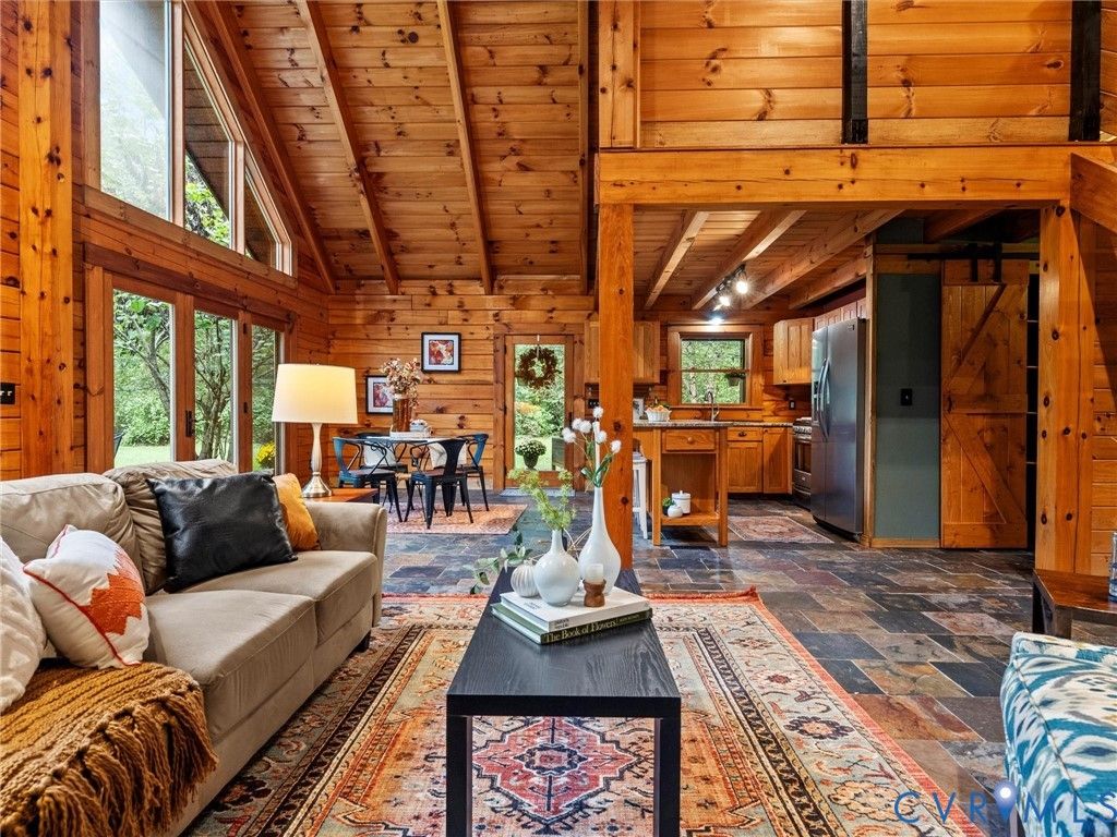 Welcome to 611 Hills Fork Rd, a private wilderness retreat unlike any other! This custom built log cabin was meticulously designed by the original owners, and is being offered for sale for the first time. Situated on 31.71 acres, this incredible property blends modern and rustic in perfect harmony. Upon entering you will instantly notice the incredible natural light and custom details throughout...from the real log walls to the slate floor tiles, each hand selected by the owners. The vaulted ceilings create a dramatic effect, and the large windows offer excellent views of the natural beauty outside. Kitchen with granite countertops, SS appliances, gas cooking, island, dbl sink, custom cabinets, & pantry w sliding barn door opens to living room with slate floors & cozy gas fireplace. Separate dining area has sliding doors to side deck. Primary bedroom is also located on the main level, with beamed ceiling, sliding doors to rear deck, and full private bath with tile shower, dbl vanity, and excellent storage. Also on the main level are the laundry/mudroom with half bath. Upstairs are the loft area, great for a family room, bonus room, or home office, the second bedroom, and the second full bath w tub, tile surround, recessed storage area w barn door, & custom vanity. The outdoor space is truly exceptional, with a covered front porch, a large side porch, and a rear patio with separate fire pit area. Best of all, this home utilizes geothermal heating and cooling systems, making your electric bills almost non-existent! Additional features include 30-year roof, washer & dryer, fruit trees, mature landscaping, and a long, very private driveway: all located within 20 minutes of shopping, interstate, and more! This property is TRULY one of a kind. Don't wait, schedule a showing today and make this private oasis your new home.