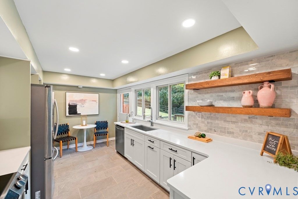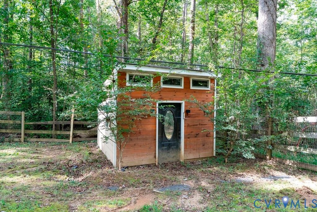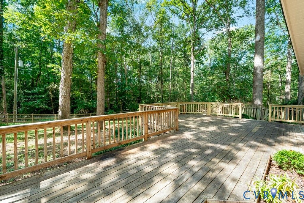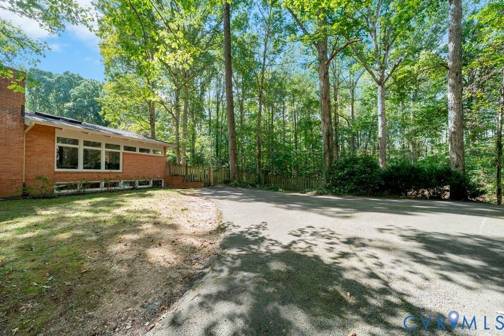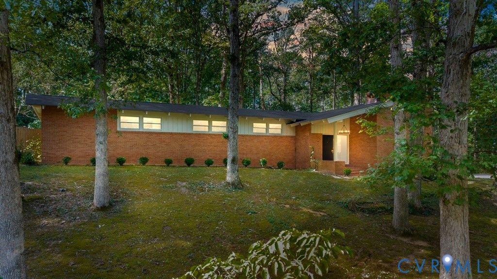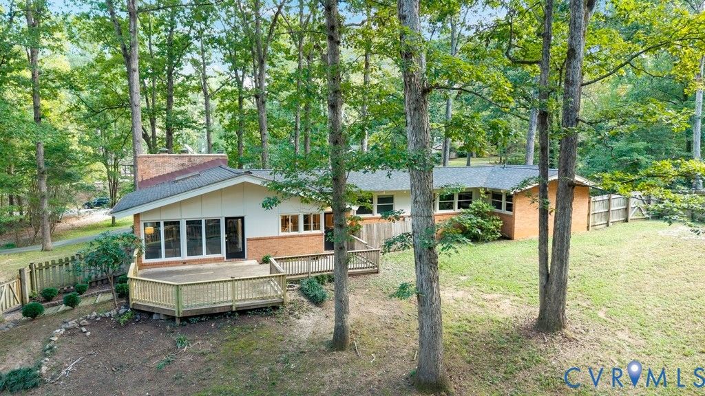 Tucked in Manakin Wood, this custom-built mid-century modern home offers the perfect blend of privacy, style, and natural light. Designed to integrate seamlessly with its wooded setting, the home feels like a private retreat with acres of wooded land behind it as a buffer to the next neighborhood. Inside, soaring beamed and vaulted ceilings, a brick fireplace wall, and expansive windows bring the outdoors in and fill the great room with light. The remodeled kitchen (2022) features white cabinetry, quartz counters, a marble tile backsplash, stainless appliances, and a sleek flat-surface range"”modern and streamlined. Hardwood floors extend through most of the main level. Bedrooms include ceiling fans, and the updated hall bath offers tile floors and surround with a new vanity. The primary has a private bath and tiled shower. Step outside to enjoy the peace and quiet of early summer evenings, wildlife views, and spectacular winter sunsets from the deck. The backyard is ideal for pets, play, and gatherings beneath the trees"”two of which cradle a hammock perfect for an afternoon rest. The landscaping include Crepe Myrtles and Hydrangeas for Spring and Summer Blooms. Manakin Woods is known for its scenic walks, lake trails, and quiet roads. The optional neighborhood recreation association offers a fishing pond and tennis courts for just $75/year. Only 7 minutes to Capital One and West Creek, and close to Hardywood, Richmond Country Club, Hermitage Country Club, and Kinloch Golf Club. Recent Updates: New roof (2025), Refinished hardwood floors (2025), Kitchen remodel (2022). A home that celebrates light, nature, and connection.