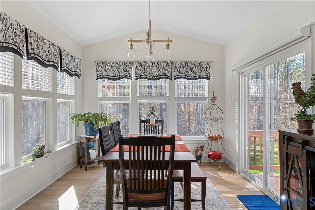 Welcome to this stunning 5-bedroom, 4.5-bath, 3,244 sq ft home nestled on a private 1.6-acre lot in Lake Margaret at The Highlands. This like-new Davidson model by Eastwood Homes is loaded with upgrades and ready for its next chapter. Step onto the wide covered front porch and into a beautifully flowing layout, where a formal dining room off the foyer leads through a quartz-topped butler's pantry with a beverage refrigerator "” perfect for entertaining. The designer kitchen is the heart of the home, featuring a large quartz island, subway tile backsplash, gas cooking, a custom walk-in pantry, and a like-new GE Café French door refrigerator. The open-concept layout continues into a bright living room with gas fireplace and a sunroom with motorized blinds on the sliding door, offering seamless indoor-outdoor living. A first-floor bedroom with full bath, a powder room, and garage access completes the main level. Upstairs, a spacious open loft welcomes you, leading to an expansive primary suite with a luxurious bath featuring a double quartz vanity, tiled shower, soaking tub, and a custom walk-in closet. Three additional bedrooms, two full bathrooms, and a laundry room with barn doors round out the second floor. Recent upgrades include a whole-house generator, conditioned crawlspace, leaf filter gutter system, and a hardscaped patio with a covered grilling area and half wall. The oversized garage and utility garage also offers generous storage. Outdoor living shines with a deck off the sunroom and peaceful views of your wooded 1.6-acre lot "” perfect for entertaining, relaxing, or simply enjoying the quiet. Lake Margaret at The Highlands offers a resort-style lifestyle with access to a championship golf course, lakes and nature trails, fitness center, pools, tennis courts, and a full calendar of social events and activities. This is a rare opportunity to own a turn-key, high-end home in one of Chesterfield's most desirable communities.