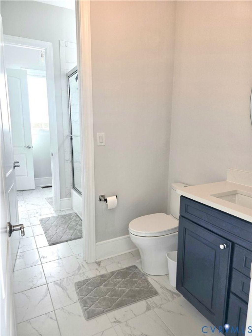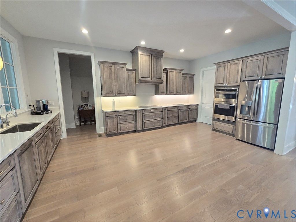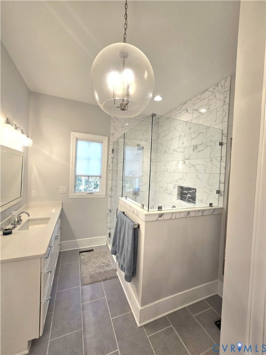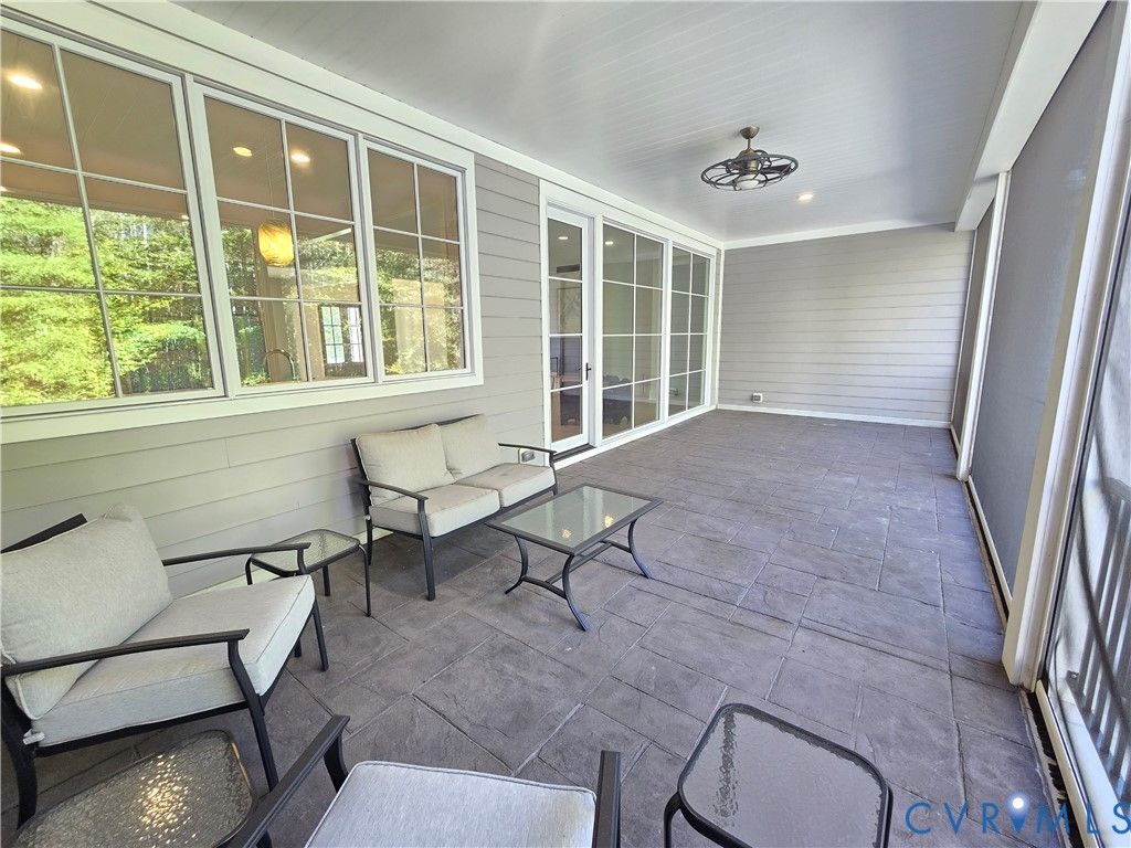 Welcome to this "Like Brand New' gem in New Kent's premier development, Viniterra! Why build when you can have this barely lived-in custom built home with the luxuries of first floor living, sitting on one of the widest park like lots available in the area. Adorned with a full front concrete porch, this open plan features a wide entry foyer with double front doors. 10' ceilings on the main level really opens things up, coupled with wide cased openings in the living areas. The Family Room features a linear gas fireplace with alcoves on either side, and a rear wall full of glass letting in an abundance of natural light. Step out onto a wonderful full rear porch, featuring a stamped concrete floor and electronic drop screening that can be raised or lowered depending on the season! Attached to the rear porch is an elevated stamped concrete patio, perfect for outdoor entertaining. The extra large kitchen has plenty of room for an eat in table, and the adjacent formal Dining Room offers seating space for family and friends at holidays or special occasions. The walk in Pantry features an abundance of custom built-in shelves. The Primary Bedroom is spacious, with a nice sized walk in closet. The Primary Bath has split vanities, and a large ceramic/porcelain shower with frameless glass enclosure and bench seat. With direct access from the Primary Bath, the Laundry Room features a ton of cabinet/counter storage, and includes a sink as well. There are 3 secondary guest bedrooms - two of which share a jack and jill style bath (each with separate toilet and vanity areas) and a tub/shower with sliding glass doors. The main Guest Bedroom has a vaulted ceiling, private full bath with ceramic/porcelain shower and a frameless glass door enclosure. Over the garage is a fully finished bonus room/5th bedroom with a private full bath, and separate thermostat controls. The oversized two car garage has 2 car charging ports. There are multiple storage closets throughout, as well as a fully floored walk in attic. Don't miss this one!