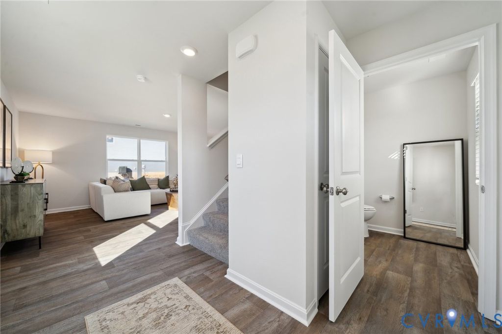 New Construction home in New Kent! The Deerfield is a thoughtfully designed home sitting on a private and usable backyard with four bedrooms and two-and-a-half baths. The kitchen features a walk-in pantry and island. That island includes a sink, making it perfect for food preparation, and has plenty of room for stools, so you can entertain. The kitchen looks out over the open-concept dining area and great room. All four bedroom are upstairs along with the Laundry room. The master suite includes an en suite bathroom and a spacious walk-in closet. This home includes D.R. Horton's Home is Connected® package, an industry leading suite of smart home products that keeps homeowners connected with the people and place they value the most. The technology allows homeowners to monitor and control their home from the couch or across the globe. Pictures and colors are for illustration purposes only and will vary from the homes as built.