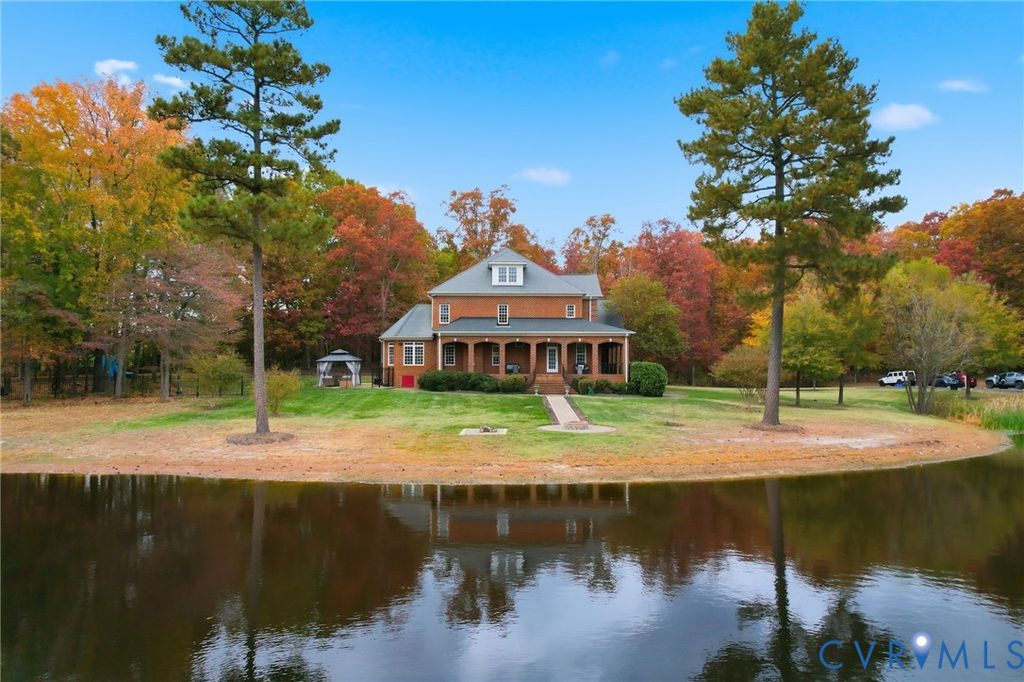 Experience timeless elegance and tranquil living in this stunning 5-bedroom, 4.5-bath brick home, gracefully positioned on a scenic lakefront lot in the sought-after Lakeview Estates community. Spanning over 4,400 square feet, this home blends classic craftsmanship with modern comfort, offering thoughtfully designed spaces for both everyday living and exceptional entertaining. The main level features formal living and dining rooms accented by beautiful millwork and abundant natural light, flowing seamlessly into a spacious family room with a classic fireplace and sweeping lake views. The gourmet kitchen is both functional and refined, showcasing granite countertops, custom cabinetry, and elegant tile flooring. A sun-filled breakfast nook overlooking the water creates the perfect spot for morning coffee or casual gatherings. Upstairs, the luxurious primary suite is a private retreat with hardwood floors and a spa-inspired ensuite bath featuring dual vanities, a soaking tub, and a tiled shower. The oversized walk-in closet provides ample storage and thoughtful organization. Three additional bedrooms and three full baths ensure comfort and privacy for family and guests alike. The third floor offers exceptional flexibility"”ideal as a guest suite, media room, or home office"”and includes its own full bath and a charming window seat with serene lake views. Outside, enjoy peaceful afternoons and effortless entertaining on the expansive patio beneath a graceful gazebo, framed by mature trees and tranquil water. The fenced backyard provides privacy while highlighting the beauty of the natural surroundings. Additional features include a side-entry garage, abundant storage, and recent upgrades such as a new furnace (2025), updated heat pumps (2025 & 2019), and a tankless water heater. Ideally located just minutes from the heart of Ashland's charming downtown, this home offers both elegance and convenience"”close to I-95, local shops, and top-rated schools"”while maintaining a sense of calm and connection to nature.