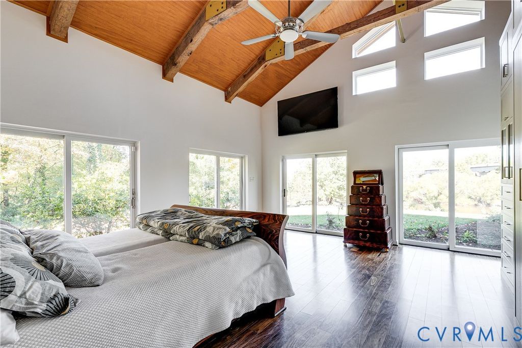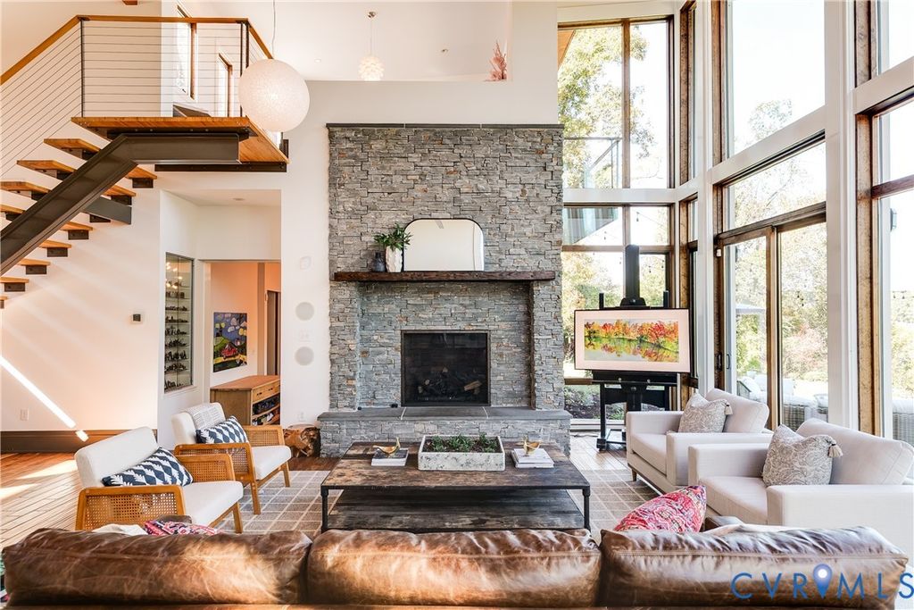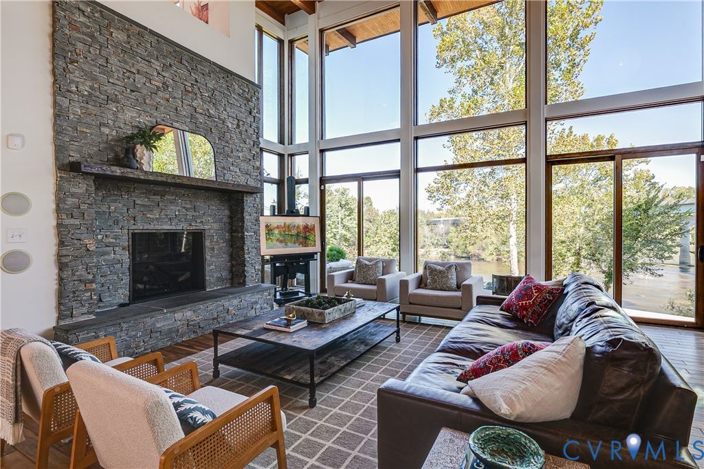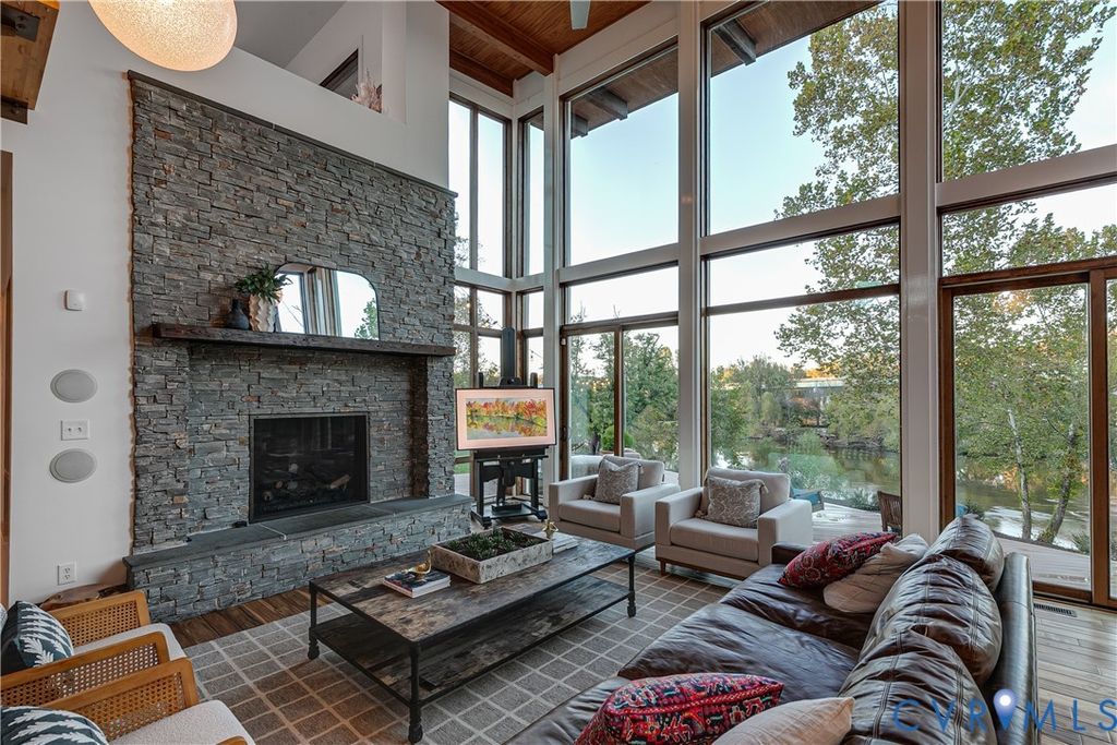 Extraordinary riverfront contemporary home with rare private access to the James River! This architectural gem blends dramatic design with comfortable living and stunning natural views. This home known as "The Igloo House" was originally created by artist Demetrios Mavroudis and was masterfully reimagined with thoughtful additions and modern luxury while preserving its artful history. Walls of glass, vaulted ceilings with exposed beams, marble floors from the Federal Trade building, architectural details from the University of Richmond and open living spaces capture the light and the river from nearly every room. The chef's kitchen features SubZero and Wolf, quartz counters and an oversized island "” perfect for entertaining. The spacious primary suite offers panoramic river views, spa bath with heated floors and exceptional custom cabinetry in the large walk-in closet. There is an additional en-suite bedroom/bath combo, 2 additional bedrooms with a hall bath to share, a 5th possible bedroom with a full bath and a large main floor laundry room. There are 2 additional versatile offices and studio spaces, which provide flexibility for modern living. The oversized former garage houses amazing storage, a huge workshop, an office and an incredible climbing wall gym with "sprung" floor. This space could easily be repurposed to a parking garage again. Outdoor spaces include expansive decks and balconies, a koi pond, stone fire pit and direct access to the flatwater for kayaking and canoeing. Set on over 2 acres with landscaped gardens and spectacular sunsets over Bosher's Dam, this home is a one-of-a-kind Richmond landmark featured in RHome, Modern Home, and HGTV. Every stone, beam and piece of metal tells a story in this home. What began as a park ranger's home, then became an artist's studio and now stands as a deeply loved riverfront retreat for a family. It is now your turn to start your new lifestyle and write your next chapter in this exceptional and special place.