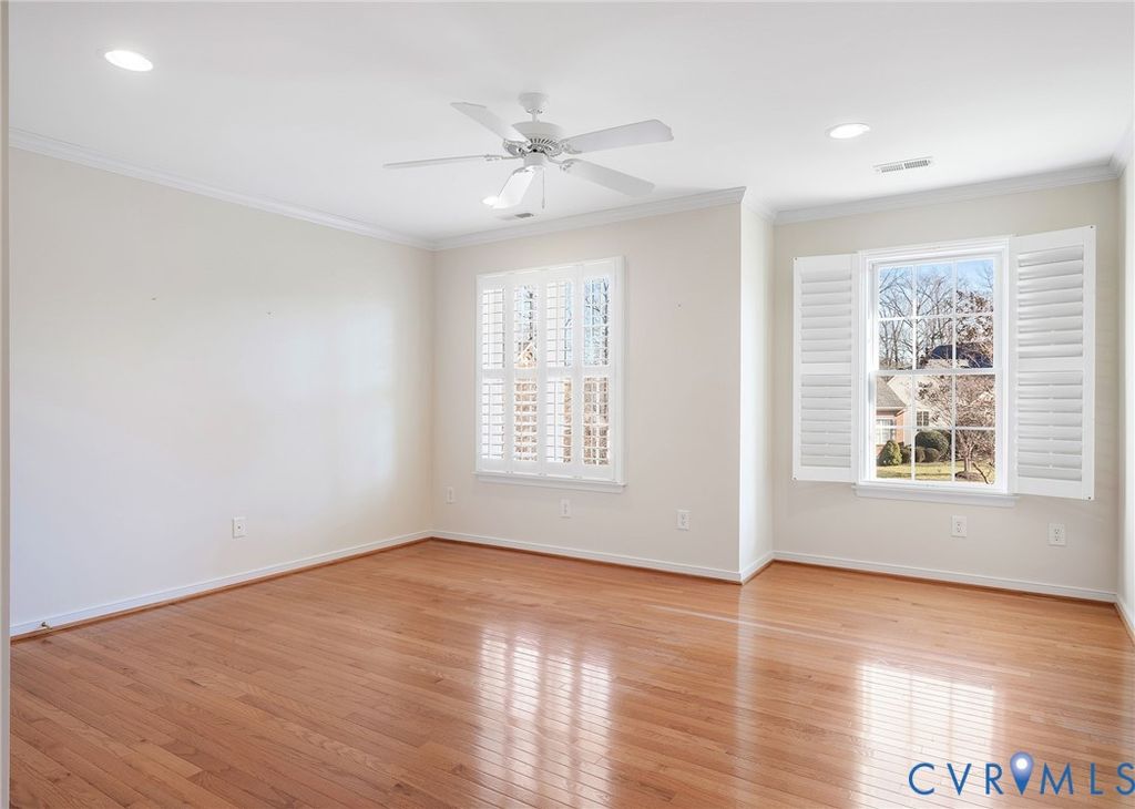 Back on market! No fault of seller. Elegant All-Brick Home in Tarrington on the James This all-brick home is ideally located on a quiet, wooded landscaped cul-de-sac in the highly sought-after Tarrington on the James community. A stately brick front with bull-nose steps and a welcoming porch lead into a spacious foyer with hardwood floors extending throughout the first and second levels. The interior showcases high-end finishes, plantation shutters, recessed lighting, and meticulous attention to detail. The gourmet kitchen offers raised-panel cherry cabinetry, granite countertops, and ample storage, opening to a bright Morning Room and family room with built-in surround sound"”perfect for entertaining. French doors lead to an oversized 24' x 15' deck, ideal for outdoor living and enjoying stunning Tarrington sunsets. The upper level includes spacious bedrooms and upgraded baths featuring custom tile and elegant finishes. The lower level provides exceptional versatility with a fifth bedroom, full bath, and large recreation area with two 12-foot lighted cedar-lined closets"”ideal for guests, a gym, or media space. Additional features include a first level master/ ensuite, Large deck, two-zone gas HVAC system, whole-house stereo, bonus room in the basement, ample storage, and a finished two-car garage with epoxy-coated flooring. Residents of Tarrington enjoy resort-style amenities, including a clubhouse, fitness center, pools, playgrounds, walking trails, and access to the James River.