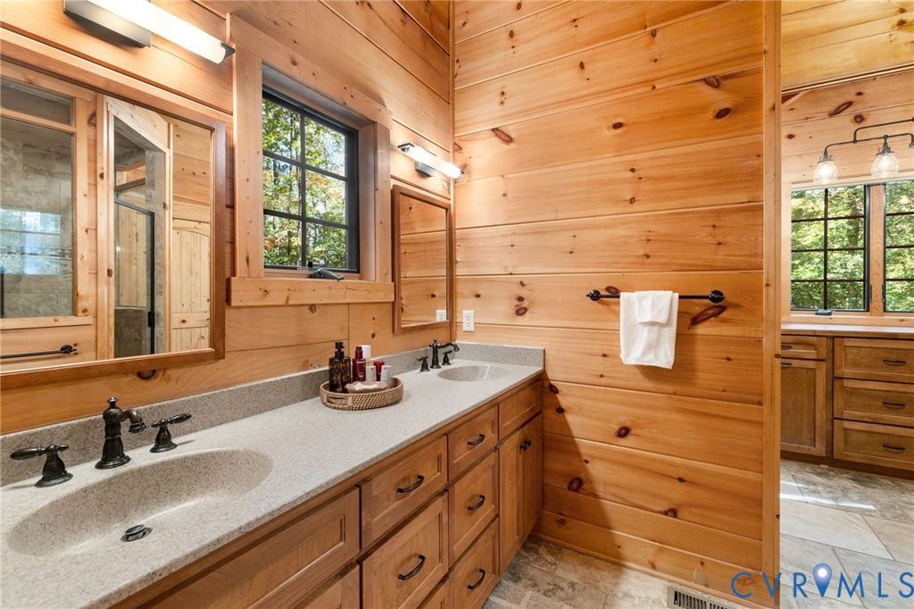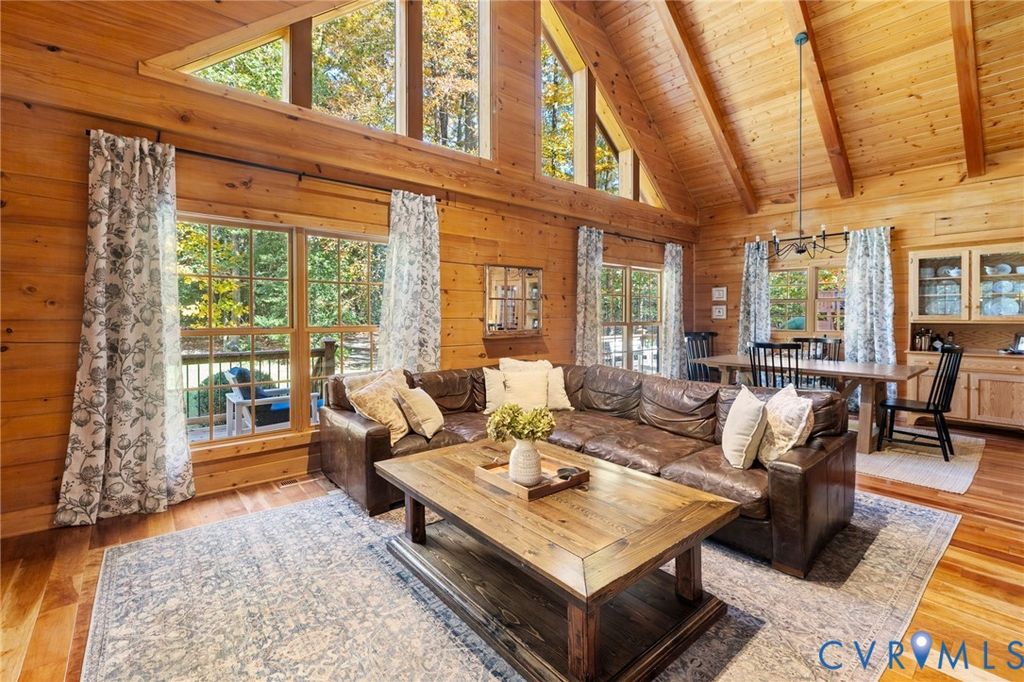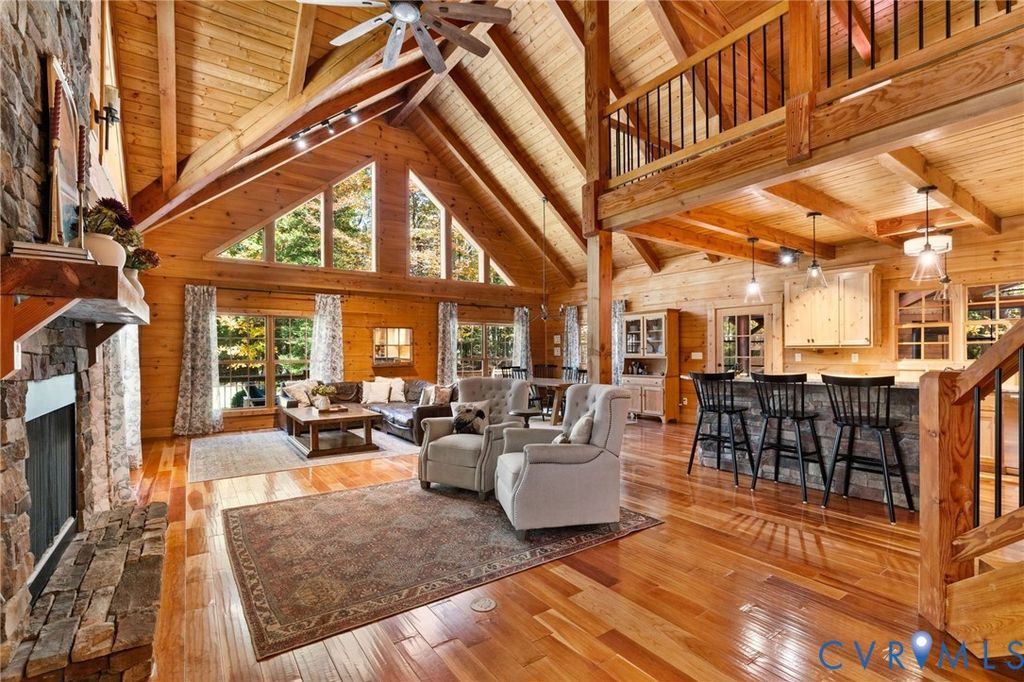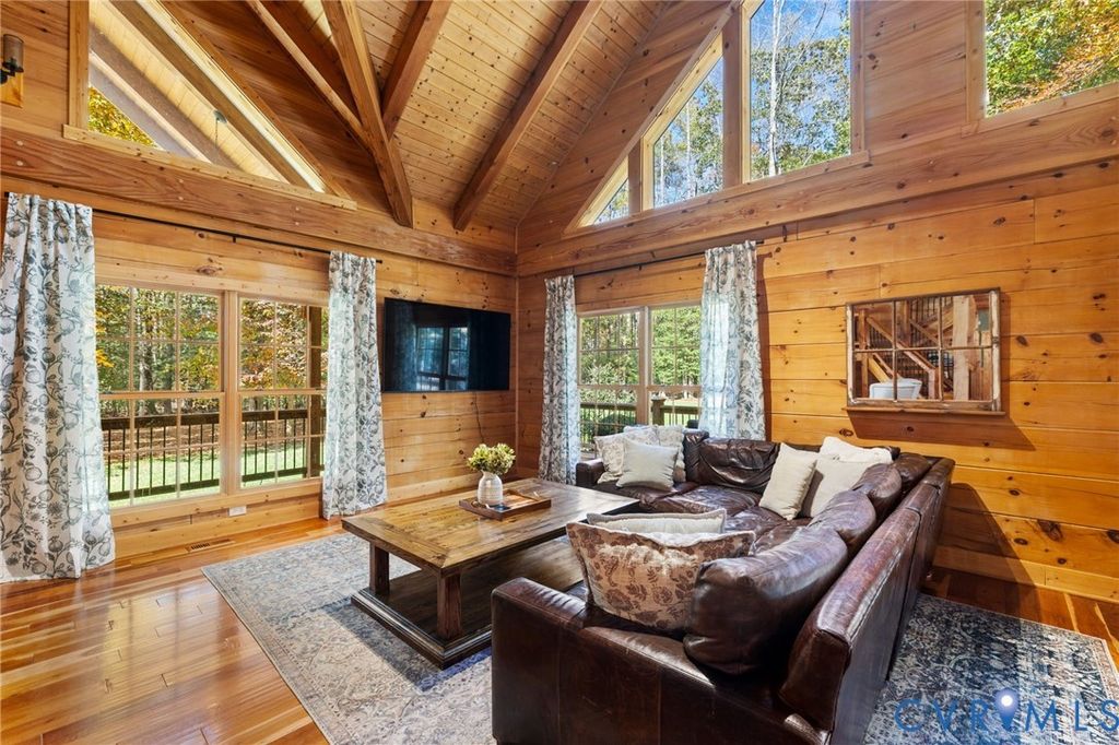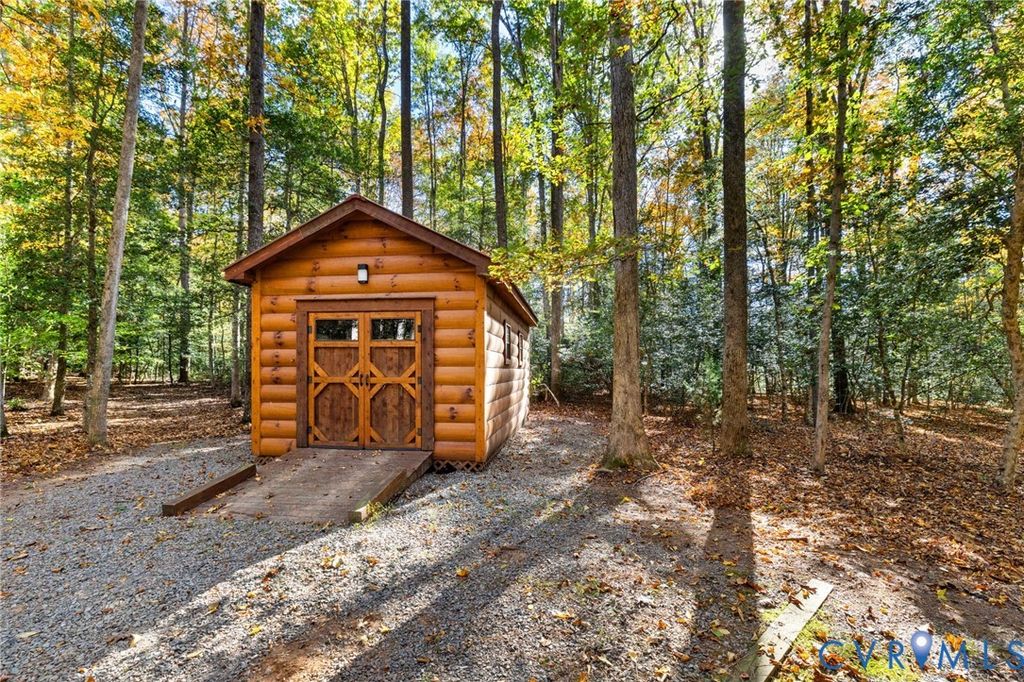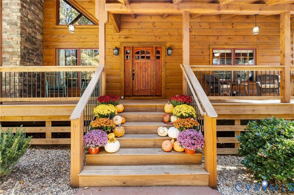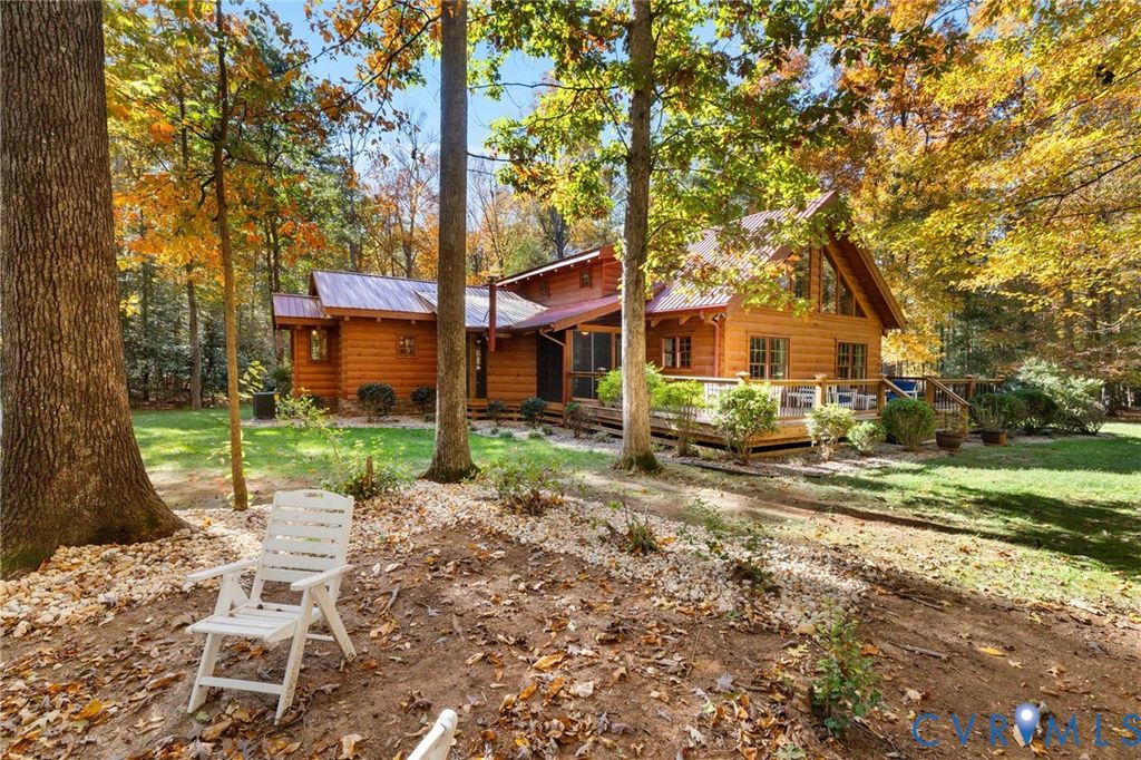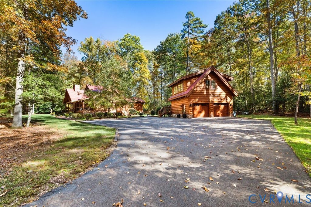 Welcome HOME to your custom-crafted log cabin retreat! Set on 12 private acres in Powhatan, this custom-crafted log retreat offers a rare blend of timeless beauty, modern comfort, and total privacy. A gated entrance and winding, tree-lined drive lead to a stunning home surrounded by natural scenery, complete with a full wraparound porch, detached carriage house, and spacious storage shed. Inside, soaring wood-beamed ceilings and walls of windows fill the home with light, while a dramatic two-story stone fireplace anchors the open main living area. The kitchen pairs rustic charm with sophistication"”featuring all Sub-Zero appliances, a Wolf range, and plenty of prep and storage space. The dining area and adjoining sunroom provide warm, inviting spaces that connect seamlessly to the outdoors and the rear deck. The main-level suite offers a peaceful retreat with a spa-style bath, walk-in shower, double vanity, and generous closet. A second bedroom and full bath on the first floor provide flexibility for guests, while the laundry room with built-ins and side entry adds everyday convenience. Upstairs, a spacious loft serves as a reading nook, media area, or office, leading to a private bedroom with its own ensuite bath. The detached carriage house (with an additional 576 sq. ft.) includes a kitchenette, full bath, and a new split unit HVAC system"”perfect for guests or extended stays. Additional features include a whole-house generator, tankless water heater, encapsulated crawlspace, new main HVAC system, and access to both fiber and Starlink internet for reliable high-speed connectivity. Outdoor living shines with expansive decks and a full wraparound porch overlooking the tranquil, wooded landscape. This exceptional property combines upscale rustic design with modern efficiency"”an ideal sanctuary where craftsmanship and comfort meet. Schedule your showing today!