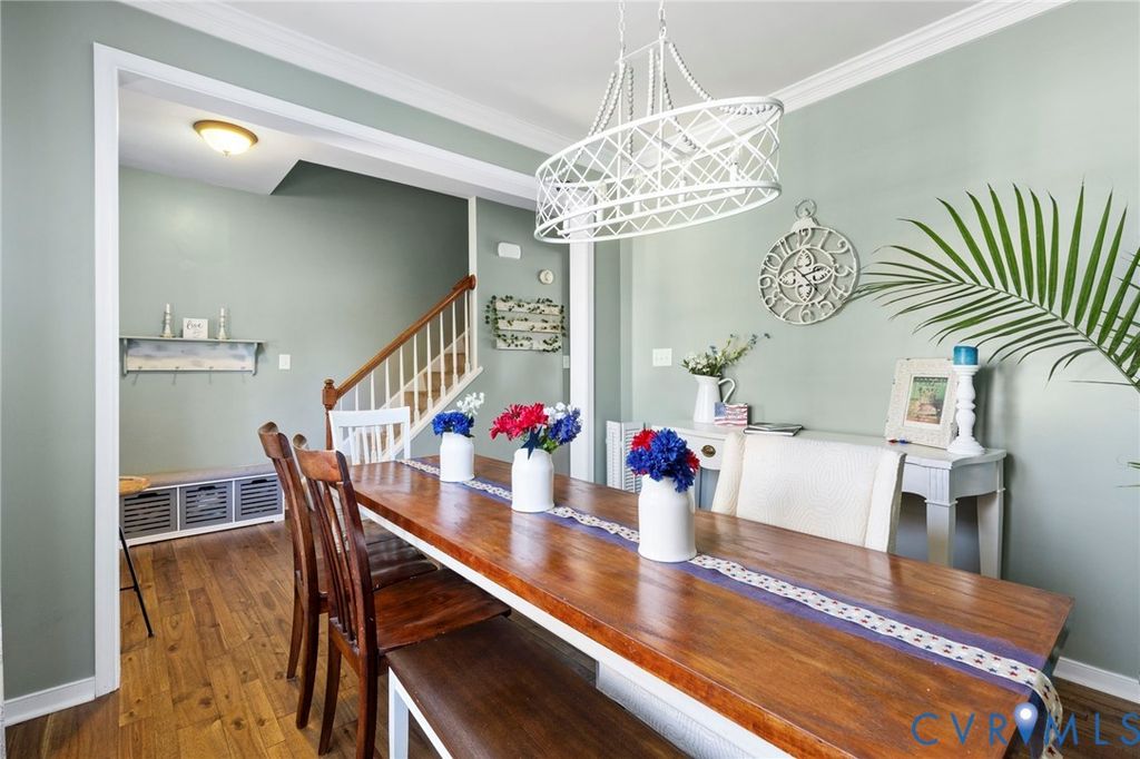 Discover this beautifully maintained 4-bedroom, 3-bath single-family home nestled on a spacious corner lot in the highly sought-after Magnolia Green community. With over a quarter acre and built-in irrigation, outdoor living is a breeze. The fenced backyard offers privacy and a perfect space for pets or play. Step inside through a stunning foyer featuring newer acacia hardwood floors that flow throughout the main level. The kitchen boasts updated granite countertops, modern fixtures, a gas range/cooktop, a generous island, and abundant cabinet space"”ideal for both everyday living and entertaining. A cozy breakfast nook and formal dining room complete the heart of the home. The expansive family room includes a large ceiling fan and is pre-wired for surround sound, creating a comfortable space to relax or host guests. A first-floor bedroom and full bath offer flexibility for guests or multigenerational living. Upstairs, enjoy a versatile loft-style family room perfect for movie nights or gatherings. The second floor also features a convenient laundry room, two spacious bedrooms, and a luxurious Owner's Suite with a tray ceiling, ceiling fan, oversized walk-in closet, and a spa-like bath. Community Amenities: Magnolia Green offers miles of walking trails, a championship golf course, clubhouse, multiple pools, playgrounds, and easy access to Hull Street and Route 288. Don't miss your chance to own this incredible home in one of the area's most desirable neighborhoods. Schedule your visit today!