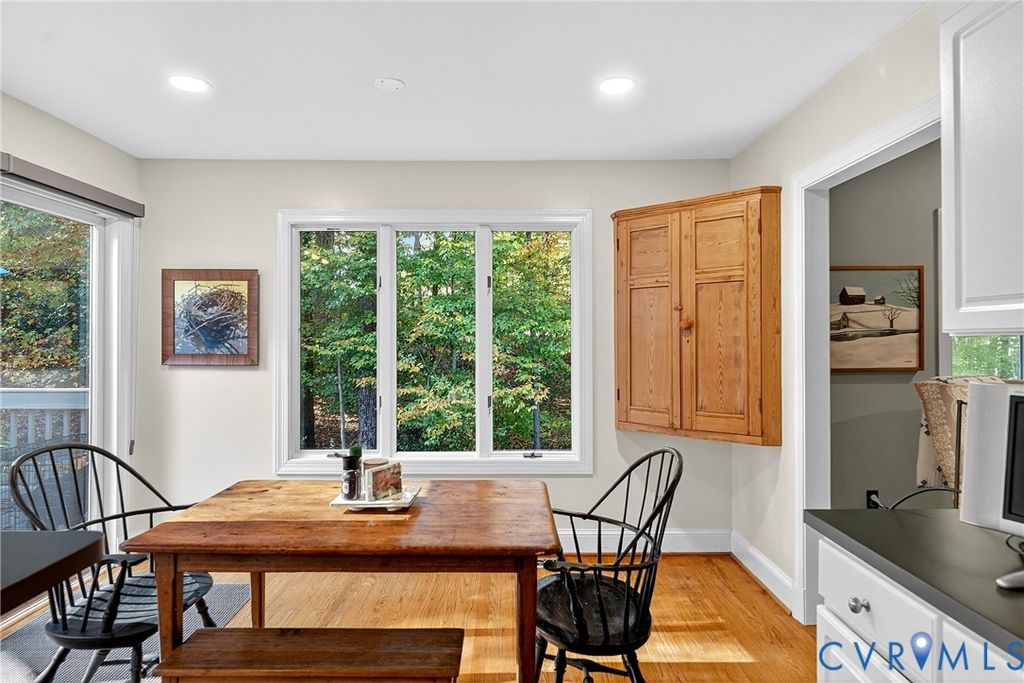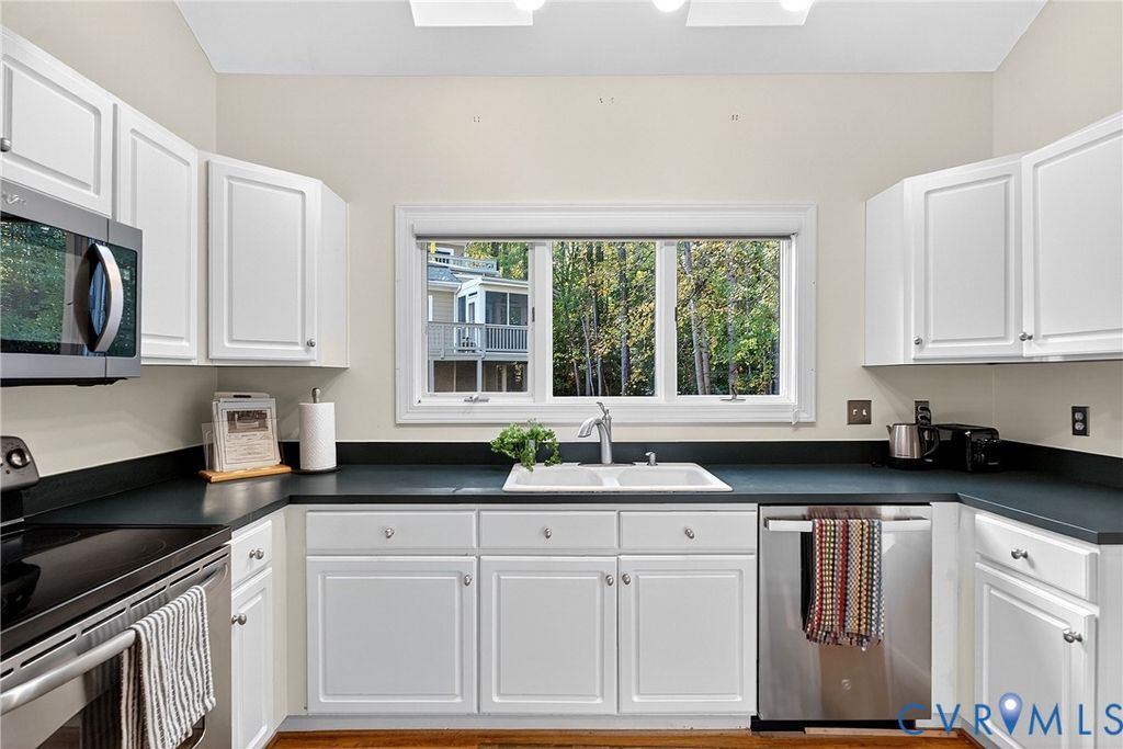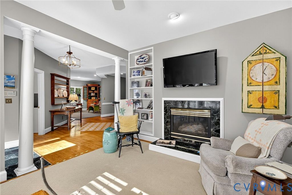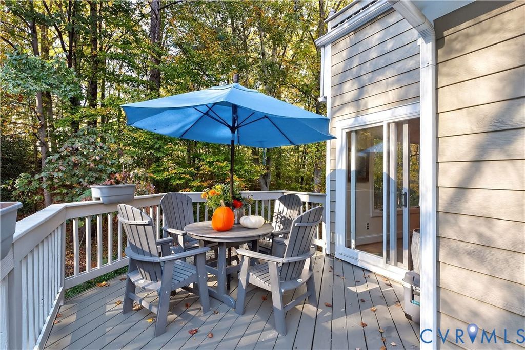 This one-level condo in The Bluffs Condominiums at Stony Point offers a super convenient location, yet features a private setting showcasing the natural beauty of the area. This very liveable floorplan features a formal Living Room with gas fireplace and built-in cabinetry, big eat-in Kitchen that opens to the Deck, a lovely Dining Room and Family Room. There are hardwood floors throughout living areas and the spacious Deck extends entertaining and dining options. The roomy Primary Bedroom and ensuite Bath also has two sizeable walk-in closets. Down the hall, you'll see the second full bath and bright Guest Bedroom as well as an Additional Room that can work for multiple uses: office, storage, workout or den. Located just across the way from Trader Joe's, Gelati Celesti, and more at Stony Point Shopping Center and Bon Air restaurants and shopping, as well as easy access to Larus Park, and major roadways, 5 minutes down Huguenot Road from the bridge and Chippenham Parkway. Enjoy this incredibly accessible location with a natural setting that feels like a secluded getaway in the midst of modern convenience.