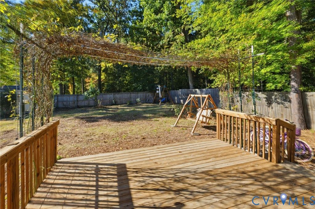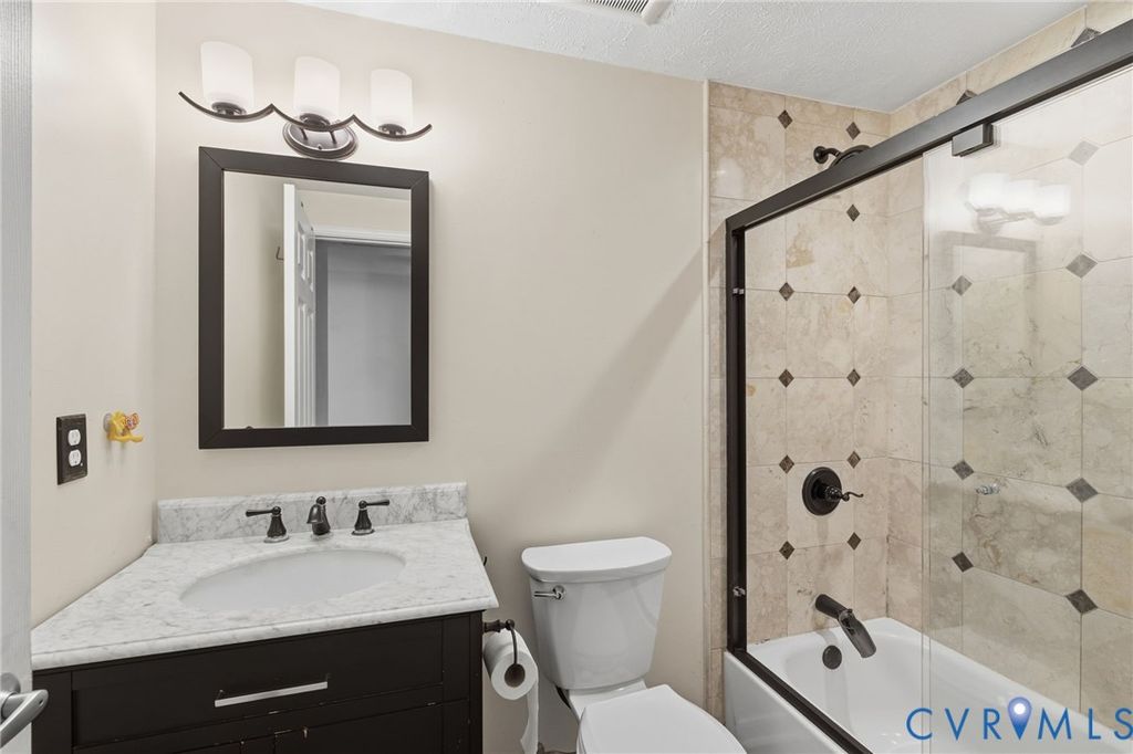 Incredible Value in the West End for a Single Family Home. Welcome to this beautifully maintained 3-bedroom, 2.5-bath home offering 1,680 square feet of thoughtfully designed living space across three levels. Perfectly blending modern updates with comfort and functionality, this home is move-in ready and full of charm. Step inside to a spacious family room featuring luxury vinyl plank flooring and a vaulted ceiling that enhances the open, airy feel. Just around the corner, you'll find a bright dining area with sliding glass doors that lead to the rear deck, perfect for indoor-outdoor entertaining. The adjacent kitchen is a true highlight, boasting granite countertops, stainless steel appliances, vaulted ceiling, and beautiful wood cabinetry offering plenty of counter and storage space. The basement level provides incredible flexibility with an additional living area featuring recessed lighting and a wood-burning fireplace with a floor-to-ceiling white brick surround. This level also includes a versatile office or flex room with built-in storage and a stylish half bath complete with a granite vanity. Upstairs, the primary suite offers a relaxing retreat with LVP flooring, a ceiling fan, oversized closet, and a modern en suite bath featuring a walk-in tile shower with a glass enclosure and contemporary vanity. Two additional bedrooms also include LVP flooring and spacious closets, sharing a full hall bath with granite vanity and a tub/shower combination. Ample storage is available in the attic space above. Step outside to enjoy the large rear deck overlooking a fully fenced backyard with plenty of room for outdoor activities and a detached storage shed for added convenience. With its modern finishes, versatile layout, and prime Henrico location, this home offers exceptional value and style for today's lifestyle at an affordable price point - which these days is an extremely rare find.