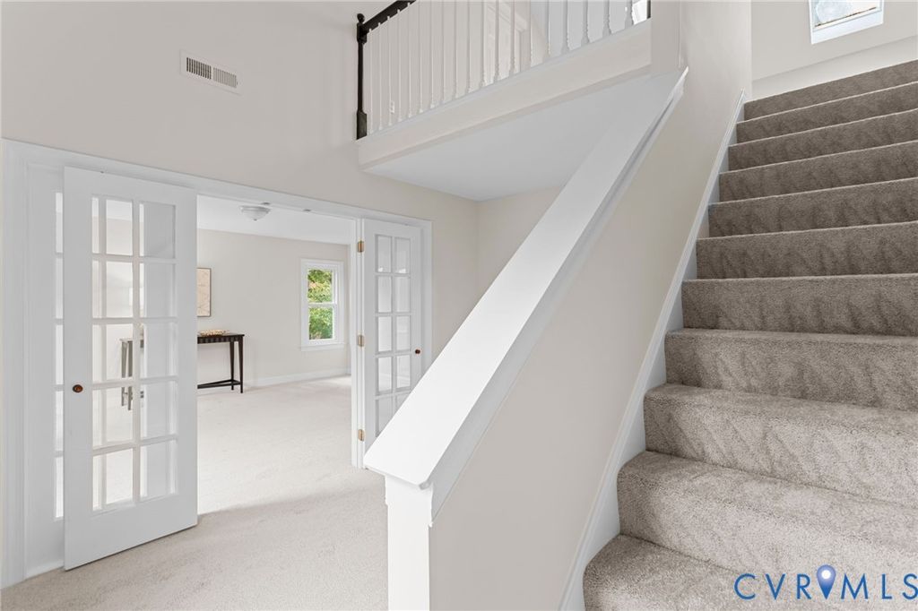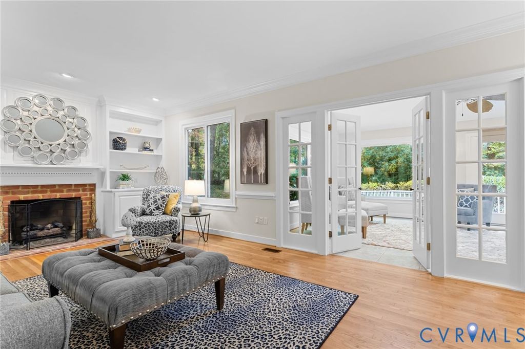 Welcome to this beautifully refreshed home on one of the most desirable lots in Royal Oaks!! Newly Painted and carpeted throughout, this is such a bright and open floor plan with a smooth transition to each of the beautiful living areas! The center foyer with staircase is open to both the oversized living and dining rooms with great wall space as well as loads of windows! Each of the grand formal rooms opens to the rear entertainment hub of the house, the family room with fireplace flanked by gorgeous built-in white bookcases, the huge sun room with vaulted ceiling, spacious powder room AND the grand sized eat-in kitchen with large center island, double ovens and tons of bright white cabinetry surrounded by beautiful new oversized windows!! Add to this a wonderful serving area between the dining room and kitchen and rear staircase to the second floor adjacent to the kitchen. The second floor has a superb Primary Suite including a spacious bedroom, oversized primary Bath, French doors to a multipurpose sitting room AND a staircase to the third level perfect for another office or work out area!! Add to this 4 extra large additional bedrooms and 2 updated full baths. The bright laundry room is also on the second floor. This floor plan will not disappoint! The exterior of this Stately Brick Front home has been freshly painted, the Grand Manor roof is only 5 years old and this fabulous lot offers the ultimate privacy !! Great sized garage with nice driveway /parking space as well! This enclave neighborhood is a "hidden gem" conveniently located with little traffic congestion and within minutes of Godwin High School, Crunch fitness, Publix, Walgreens, Interstate 64 and 288 and loads of restaurants and shopping !!