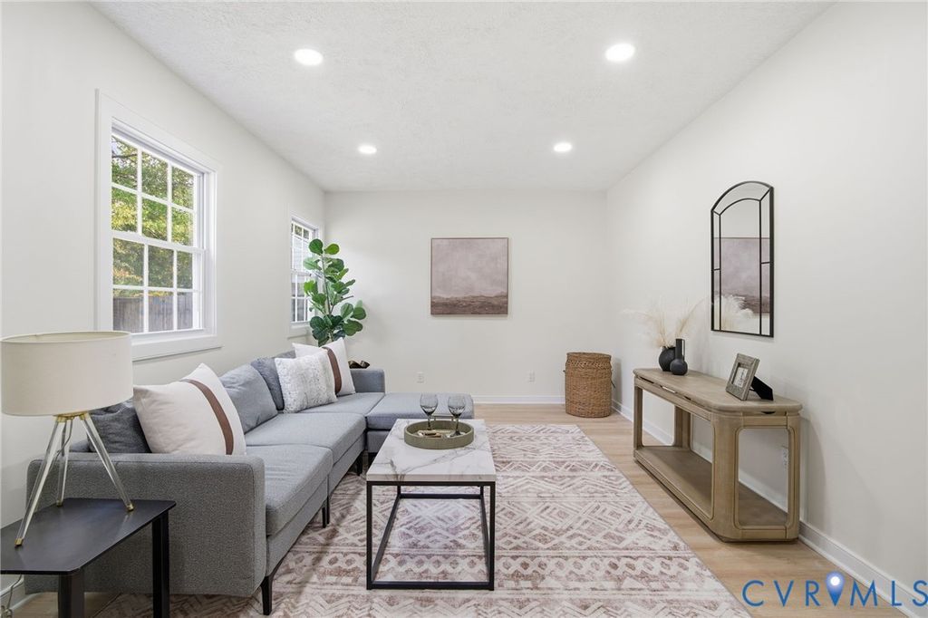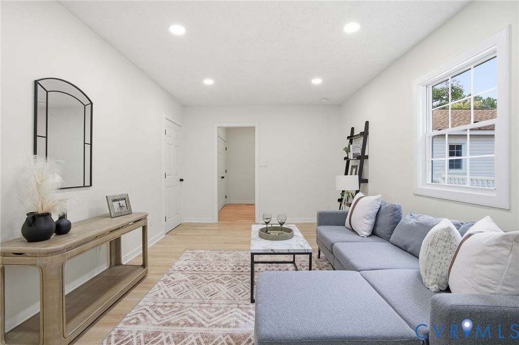 Completely refreshed and ready to impress! This beautifully renovated 3 bedroom, 2 bath rancher blends modern updates with effortless single-level living. Every detail has been thoughtfully redone to create a home that feels brand new from top to bottom. Step inside to discover bright, open living spaces with all-new LVP flooring throughout the main areas, providing both style and durability. The spacious living room welcomes you in and flows easily into the fully renovated kitchen, complete with stone countertops, a tile backsplash, and all-new stainless steel appliances. The adjoining eat-in area is perfectly lit by a modern ceiling fixture, creating an inviting spot for everyday meals. Just off the kitchen, the new deck offers a great place to relax or entertain, while the family room with recessed lighting provides additional living space and convenient direct access to the finished 1.5-car garage, featuring fresh paint, an automatic door opener, and a pedestrian entry. Down the hall, the renovated hall bath showcases new tile flooring and a tiled shower/tub combo, while two comfortable bedrooms offer double closets and ceiling fans for comfort and functionality. The primary suite serves as a private retreat, complete with a large double closet and a fully updated ensuite bath featuring a standing tiled shower and tile flooring. Nearly every surface of this home has been upgraded, including a new HVAC system, all-new ductwork, all-new windows, recessed lighting, full kitchen and bathroom renovations, new septic system, and fresh landscaping that enhances its curb appeal. A paved double-wide driveway, covered front stoop, and low-maintenance exterior complete the package, making this home as practical as it is polished. Ideally located near Chesterfield Towne Center, a plethora of dining options, Route 288, and Hull St, 5581 Onnies Drive offers a perfect blend of quality craftsmanship and everyday comfort. Come experience a move-in-ready home where everything feels new again, schedule your tour today!