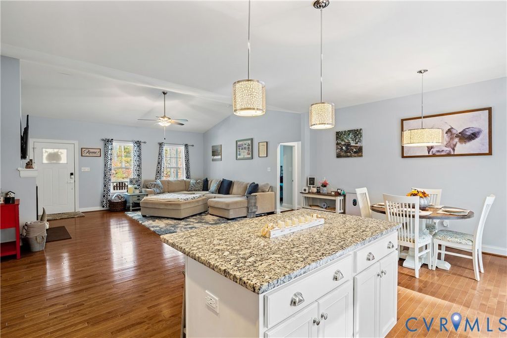 Welcome to 4875 Kimber Ln! Conveniently located just 5.5 miles from the Gum Spring exit off I64, this home sits on 3.89 acres and features 3 bedrooms, 2 bathrooms, 1,826 square feet, a rear deck, and a 2-car attached garage. Beautiful hardwood floors run throughout the living room, dining area, and gourmet kitchen. The open floor plan provides plenty of space and functionality, perfect for entertaining or everyday living with family and friends. The gourmet kitchen boasts granite countertops, a pantry, recessed lighting, stainless steel appliances, and a large island. The layout includes two well-sized bedrooms and a hall bath opposite the spacious master suite. The master suite features a 6x12 walk-in closet, a private bath with a large tiled shower, double vanity, and separate toilet room. This is an amazing opportunity to own a stunning property on a private lot in a prime location!