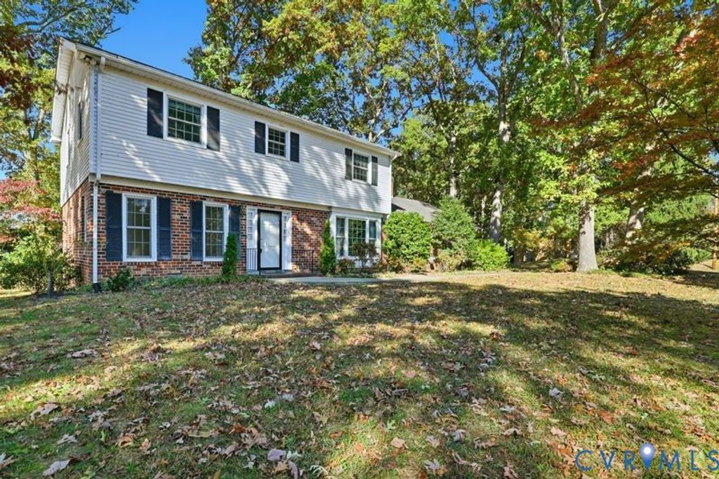 CLASSIC SURREYWOOD COLONIAL offers spacious rooms with lots of natural light, a wonderful floor plan, solid craftsmanship and materials from a bygone area. Many OUTSTANDING FEATURES and SELLER UPDATES to appreciate, including NEWER ROOF (5 YO), HEATING/COOLING SYSTEM well maintained by Seller (5 YO), BRICK & VINYL SIDING, ENERGY-EFFICIENT THERMAL WINDOWS & CONVENIENT DUAL DRIVEWAY ACCESS. WOOD FLOORS under carpet on both levels. Versatile floor plan has an inviting foyer, living room and dining room, comfortable den with wood paneling, beamed ceiling & built ins, fireplace with GAS LOGS and raised brick hearth, sun room, HUGE EAT-IN KITCHEN with lots of extra cabinet & storage space, convenient half bath and LARGE LAUNDRY ROOM. There are four nicely sized bedrooms on the second floor, along with 2 full baths. LOTS of CLOSET AND STORAGE SPACE throughout. SLATE PATIO and AWESOME CORNER LOT! HOME WARRANTY! Surreywood is an ABSOLUTE GEM of a neighborhood with large lake, playground, pools and tennis courts. A variety of social events are scheduled throughout the year, as well. A perfect neighborhood for walking, jogging & biking. Convenient to Downtown RVA, VCU, U of R, major roadways, shopping, a great selection of international restaurants, coffee bars, markets & premier area hospitals.