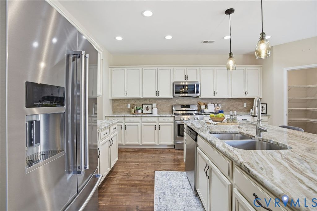 Welcome to 526 Carter Ct, a pristine 4 bedroom 2.5 bath home in close proximity to York County, Gloucester County, Williamsburg, and major roads & interstate. Walk inside and you will instantly notice the gorgeous floors and abundant natural light throughout. Dining room w tray ceiling & crown molding continues to butler's pantry w excellent cabinet space. Continue into the chef's kitchen with amenities galore including an 8ft island w seating, SS appliances incl. refrigerator, dbl sinks, tile backsplash, pendant & recess'd lights, walk-in pantry, stove w gas cooking, and breakfast area. The living room is generous in size and includes built-in bookcases, gas fireplace, & access to the rear deck. An office with new carpet and a half bath w pedestal sink complete the main level. Upstairs you will find a large loft area with multiple living and seating options, and four large bedrooms. Primary bedroom is 14x19 with fresh paint, tray ceiling, ceiling fan, huge walk-in closet, and private bath w dbl vanity, granite countertops, water closet, soaking tub, and tile shower w glass. Three additional bedrooms are all substantial in size and offer great storage space, two with walk-in closets and one with a double-door closet. Full hall bath w granite countertop, dbl vanity, tile floor, & tub/shower, and a laundry room / mudroom complete the second level. Outside features include front porch, 2+ car attached garage w tons of additional shelving/storage space, sliding glass doors, a sizable rear deck w new boards, large corner lot, fully fenced rear yard, and double width concrete driveway. Even better, with a 30-year roof, vinyl windows, vinyl siding, & new decking, this home is maintenance free as well! Recent updates include new carpet, lighting fixtures, and paint! Offering over 3,000 sqft of finished living space, this home is a perfect blend of modern conveniences with timeless details. Don't wait, you do not want to miss this house.