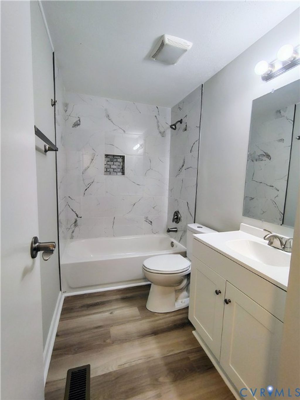 WOW, Beautifully Renovated 3 Bedrooms, 2 Full Baths, 1520 sq ft. split level with the following NEW-NEW-NEW enhancements, new cabinets, Quartz countertops, Ceramic bath and shower surrounds, New toilets, vanities, all new plumbing fixtures, lighting, LVP flooring, Carpet in bedrooms, New Stainless Steel STOVE, DISHWASHER, REFRIGERATOR, MICROWAVE, and New hot water heater. HVAC serviced and relatively new. Also upgraded/ replaced the electrical panel. This home features a spacious kitchen, which leads to a large deck, perfect for family gatherings or entertaining friends. GREAT LOCATION---Just minutes away from Midlothian Turnpike, which offers an abundance of services, shopping, and schools, all within a short distance from this house. SHED, FIREPLACE, CHIMNEY, FLUE CONVEY AS-IS.