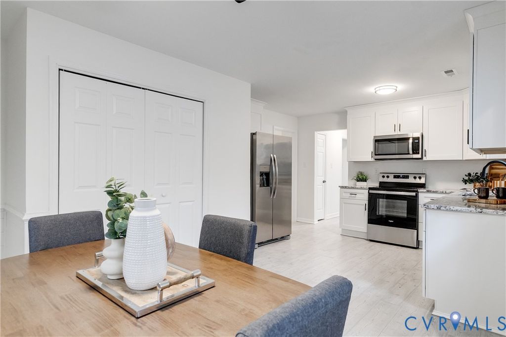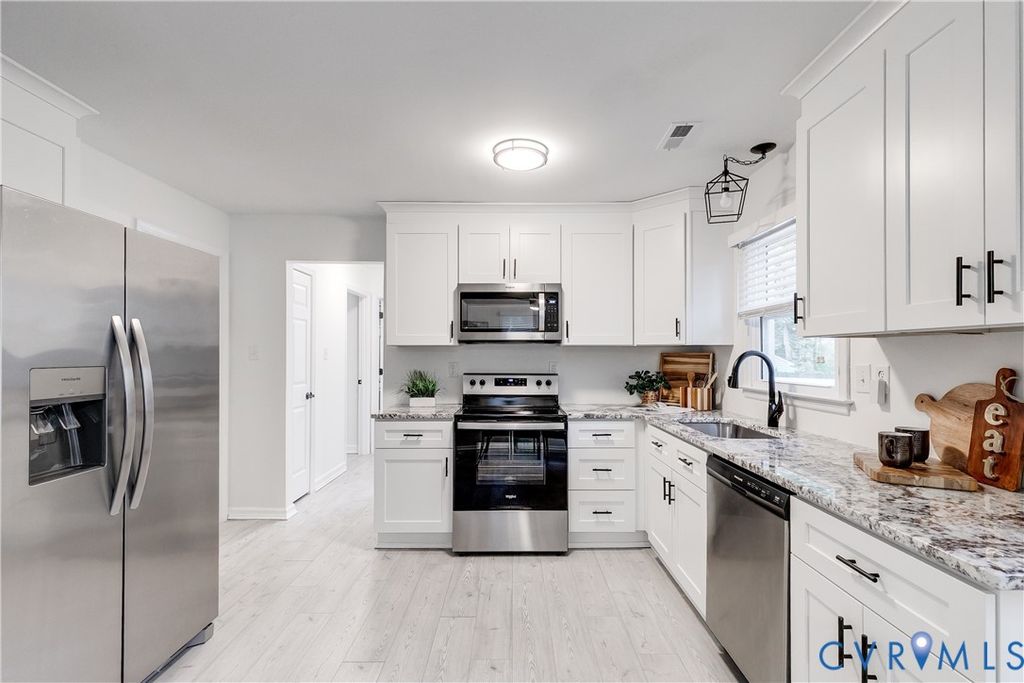 Totally renovated just two years ago, this 4-bedroom, 2-full-bath Cape is filled with charm and thoughtful updates from top to bottom. With nearly 1,800 sq. ft., it offers flexible living options "” enjoy a first-floor primary bedroom, or make the upstairs two-bedroom, one-bath layout, your private retreat or guest hideaway. This adorable home is move-in ready and designed for easy care inside and out, featuring vinyl siding and luxury new vinyl plank flooring throughout both levels. The spacious eat-in kitchen shines with granite countertops, stainless-steel appliances, and a laundry nook with newer washer and dryer conveniently tucked away. The living-room fireplace adds a cozy focal point for relaxing evenings or entertaining friends. Both bathrooms have been updated with modern fixtures and fresh finishes, and there's ample closet space throughout. Even the main water line was replaced, giving you peace of mind and great-tasting water. Step outside to enjoy two porches "” front and back "” plus a fenced backyard oasis originally designed with "Mr. Leo the Pug" in mind! A new white fence encloses a safe and stylish outdoor space for pets or play, complete with a shed, deck furniture, and a table fire pit that all convey. Located in Chesterfield County, this home offers excellent schools and a prime location just minutes from Route 288, Iron Bridge Road, Hopkins Road and Chippenham Parkway "” with only a 24-minute drive to downtown Richmond for theaters, concerts, and award-winning restaurants. It's truly like a brand-new home inside, offering comfort, convenience, and character in one irresistible package. Don't miss your chance to see it. Welcome home!