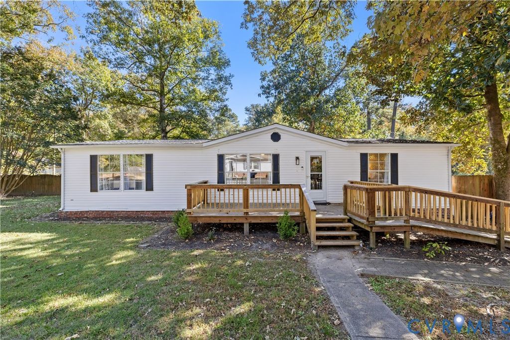 Tucked away on a private corner lot in North Chesterfield, this home sits on an expansive .62-acre parcel with a fully fenced backyard and two storage sheds for plenty of storage. Inside an open-concept layout featuring vinyl plank flooring all throughout the home, vaulted ceilings, and built-in shelving. The kitchen features beautiful granite countertops, SS appliances. Off the kitchen is a light-filled Florida room with access to a screened-in porch and a second deck perfect for outdoor dining or relaxing in any season. The primary suite offers a spacious walk-in closet and an en-suite bath with a beautifully tiled shower. Two additional bedrooms feature generous closet space. This sale includes three additional lots offering endless potential at no extra cost. Whether it's gardening, entertaining, or just enjoying some peace and privacy, there's space for it all. Come check this gem before it's gone.