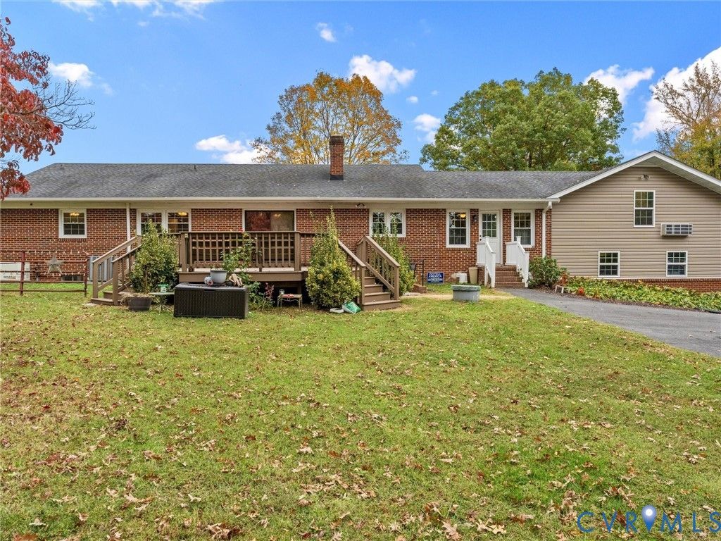 Solid craftsmanship from 1962 meets today's modern conveniences in this beautifully maintained 4-bedroom, 3-bath brick rancher offering 2,456 sq ft of light-filled living space. Set on 6.228 acres, this home delivers country living with a location that keeps you connected"”just 10 miles to Amelia Court House and an easy 25-minute drive to Chesterfield. Beautiful wood floors flow through most of the home and the layout feels bright and inviting. The kitchen features white cabinetry, granite countertops, tile backsplash, stainless steel appliances, a pantry, and windows over the sink overlooking the backyard. A separate dining area includes a lovely picture window and built-in shelving"”perfect for displaying your favorite pieces. The living room is a showstopper with a large picture window flanked by double windows capturing views of the front yard. Natural light fills every room in this home. Enjoy cozy evenings in the den with a painted brick gas-log fireplace and sliding doors leading to a spacious wooden deck that has been newly refreshed and stained for outdoor enjoyment. A fantastic addition includes an attached 2-car garage and a private primary suite above it with an ensuite bath and comfortable carpeting. Major improvements"”roof, vinyl windows, HVAC system, and water heater all replaced within the last 10 years"”pair perfectly with the whole house generator, giving you worry-free living for years to come. The full unfinished basement offers incredible potential, featuring a second gas-log fireplace and full waterproofing with a dehumidifier and sump pump already in place. This timeless home has all the characters you love, the updates you need, and a setting you'll never want to leave.