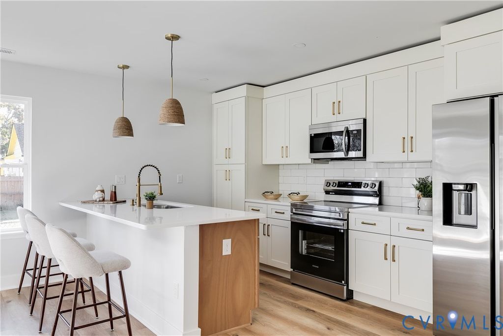 RENOVATED AND EXPANDED!!! Ranch-style home, a rare find in this area of Richmond! Offering 4 bedrooms and 2.5 bathrooms, this home perfectly blends modern design, comfort, and functionality. Step inside to a bright and welcoming living room featuring an electric fireplace that adds both warmth and charm. At the end of the hallway, you'll find the spacious open-concept family room and kitchen, the true heart of the home. The kitchen is a chef's dream, showcasing ample cabinet space, elegant quartz countertops, and modern fixtures that elevate the space. The dining area, conveniently located next to the kitchen, creates the perfect flow for family meals and entertaining guests. The primary suite offers a private bathroom and a large walk-in closet. The additional bedrooms are thoughtfully positioned throughout the home, sharing a stylish secondary bathroom plus a half bath for guests. Enjoy the outdoors with multiple outdoor living spaces: a welcoming front porch, a rear deck, and a spacious side deck, offering the perfect setting for relaxing or hosting gatherings. Parking is a breeze with a double paved driveway, enjoy privacy with a fenced backyard which is very spacious. Ideally located just minutes from downtown Richmond, dining and shopping, and the beautiful Ginger Garden Botanical Park, this home combines suburban tranquility with urban convenience. Come see this stunning ranch today, fall in love and make it yours!
